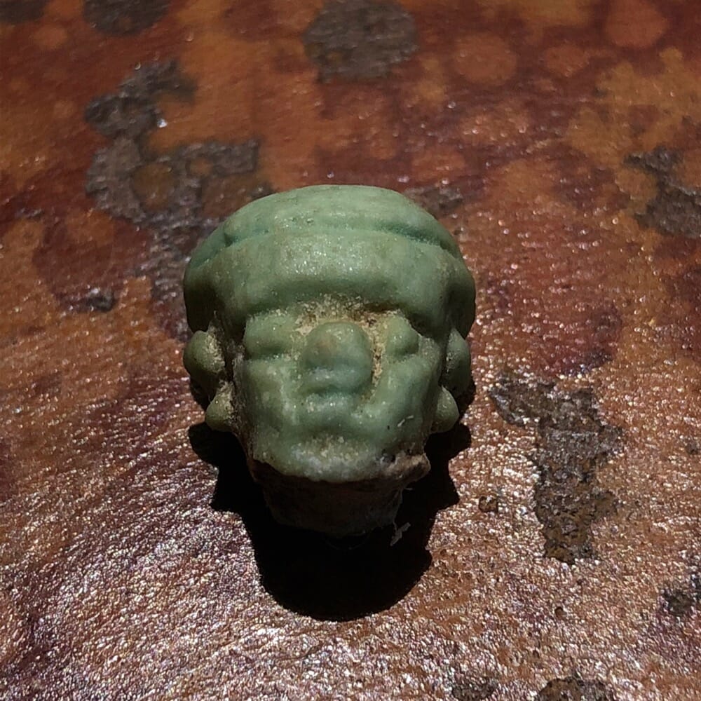 Egyptian Faience amulet, head of Ptaikos, 664-332 BC