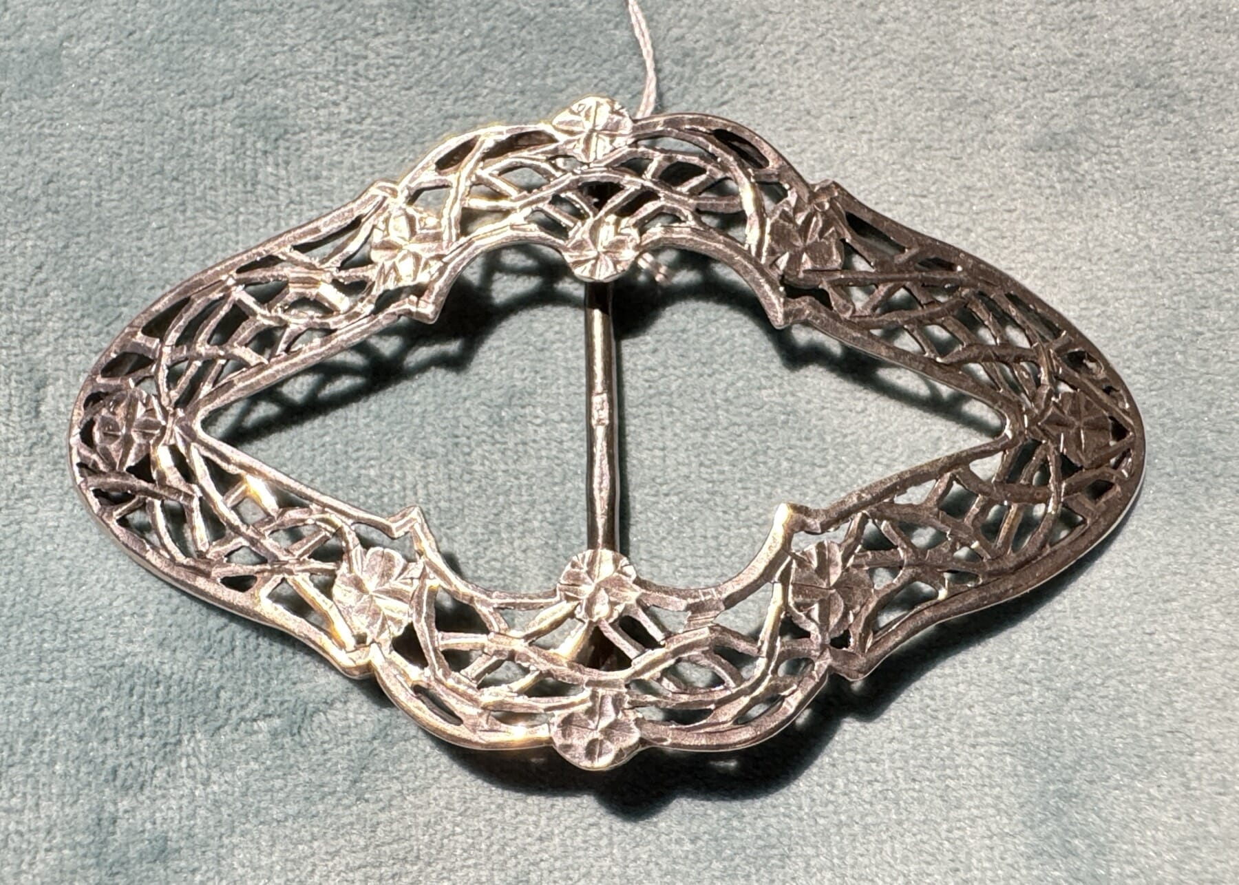 Sterling Silver Arts & Crafts buckle, Art Nouveau flowers, c. 1895