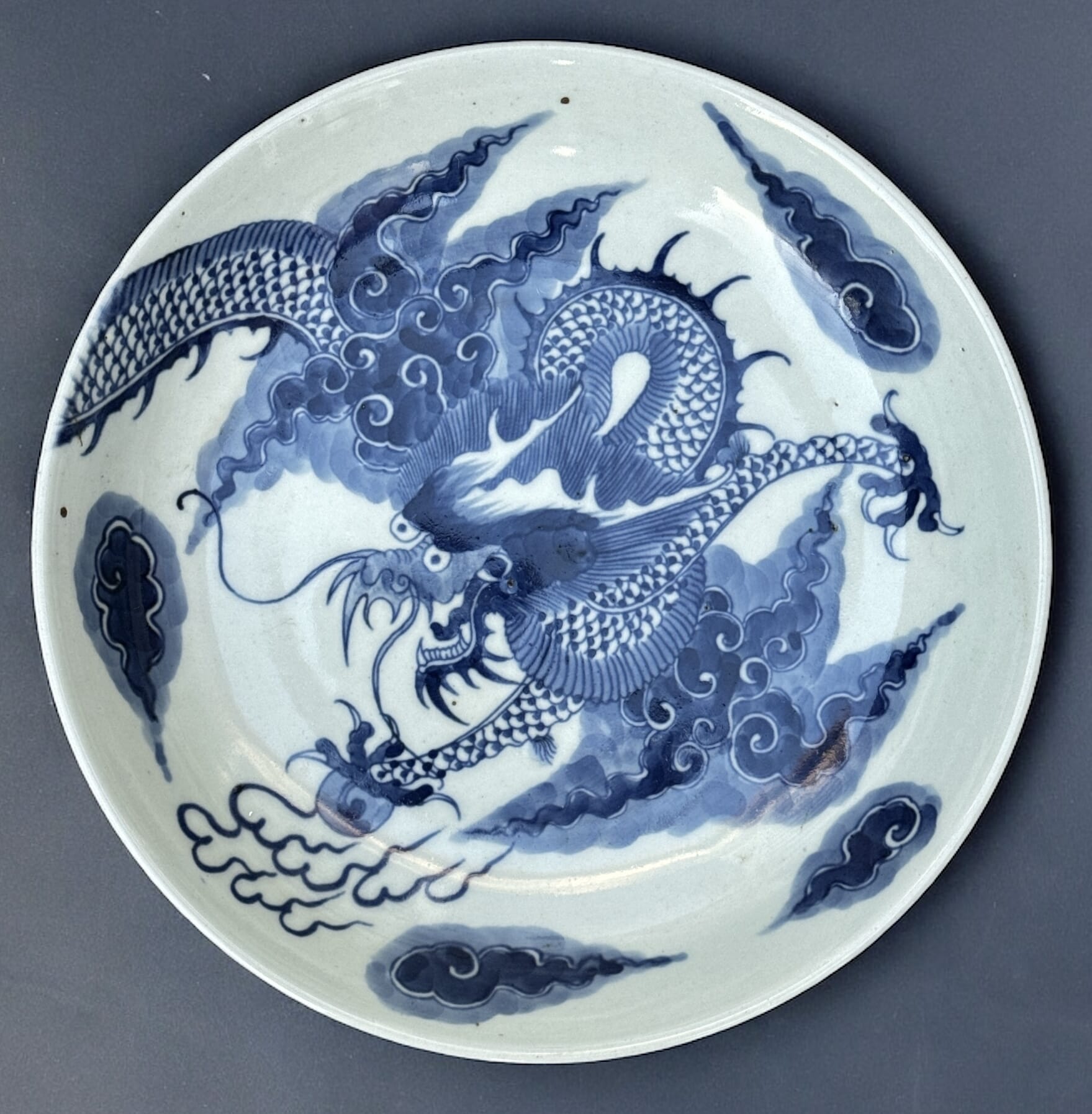 Chinese blue & white ‘Dragon’ dish, 20th century