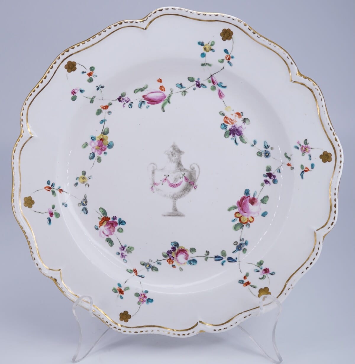 Chelsea-Derby plate with urn and flowers, c. 1775