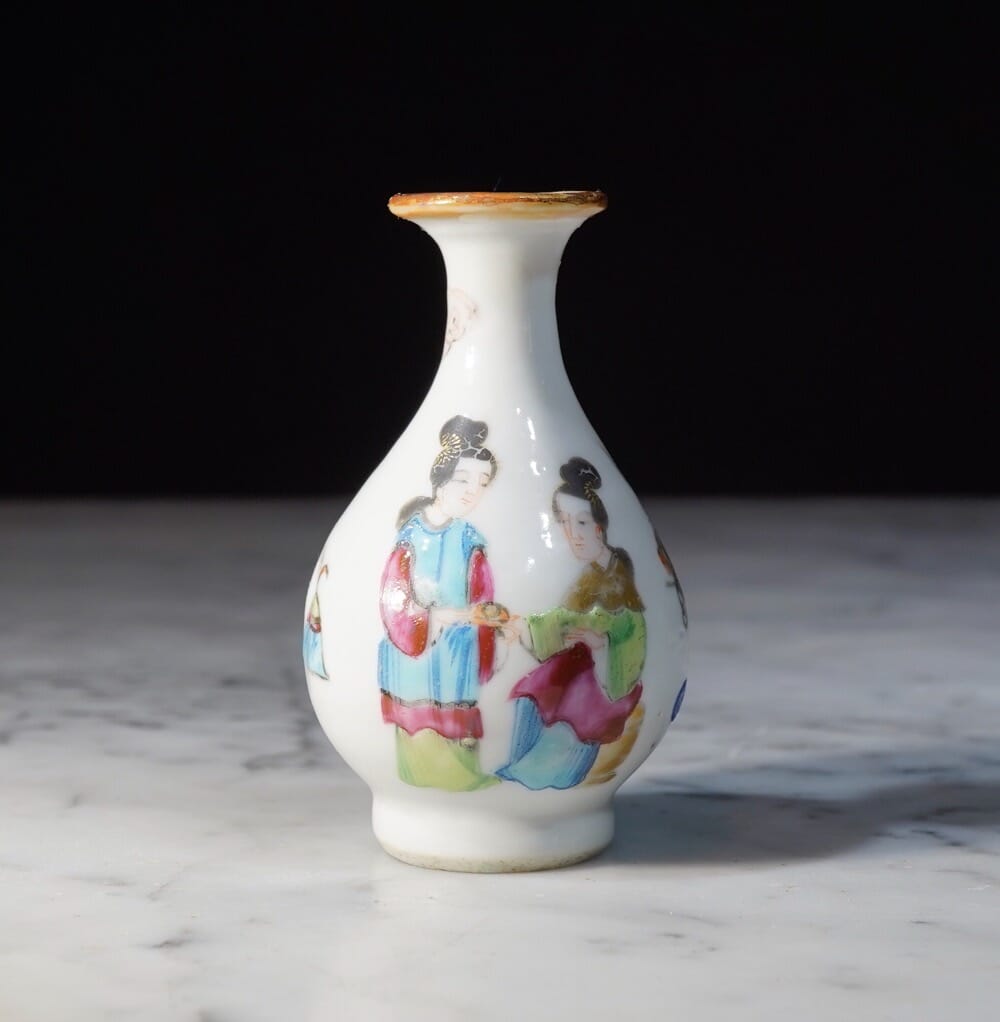 Chinese Cantonese porcelain pear shape mini vase, c.1870