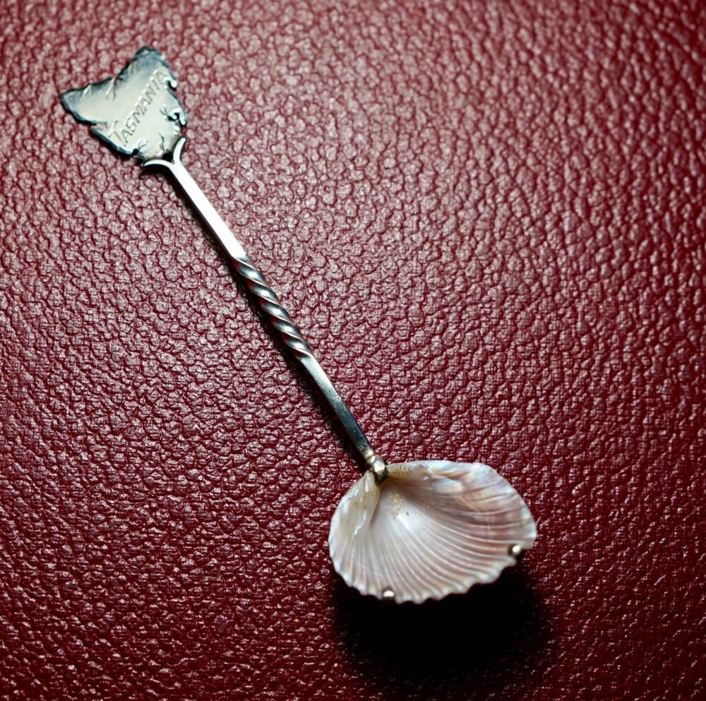 Sterling Silver souvenir spoon – Tasmanian brooch shell c. 1900