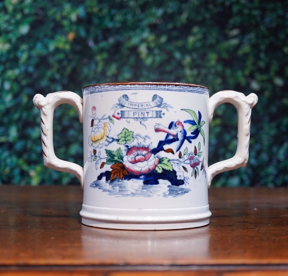 Sytch Pottery – Till & Sons – double handled mug, Oriental ‘PINT’, c.1870