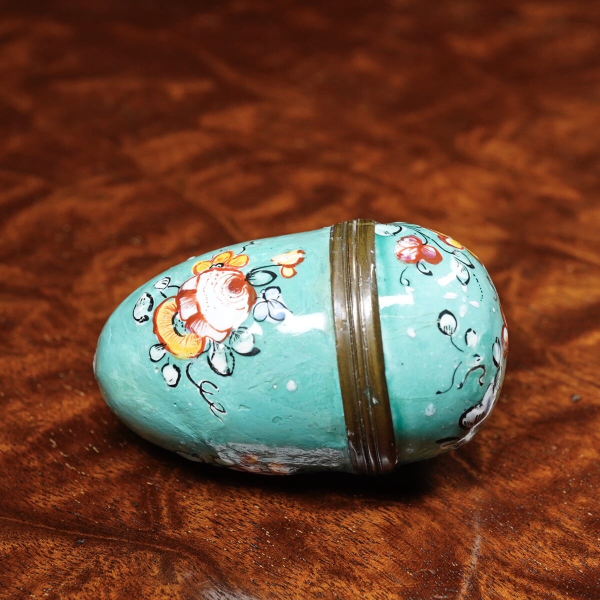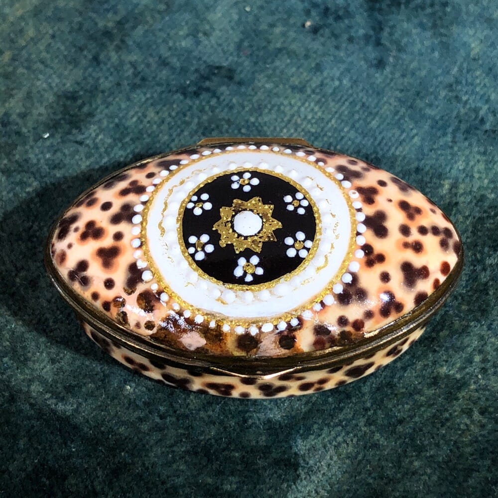 Unusual ‘Tiger Cowrie’ English Enamel patch box, c. 1780