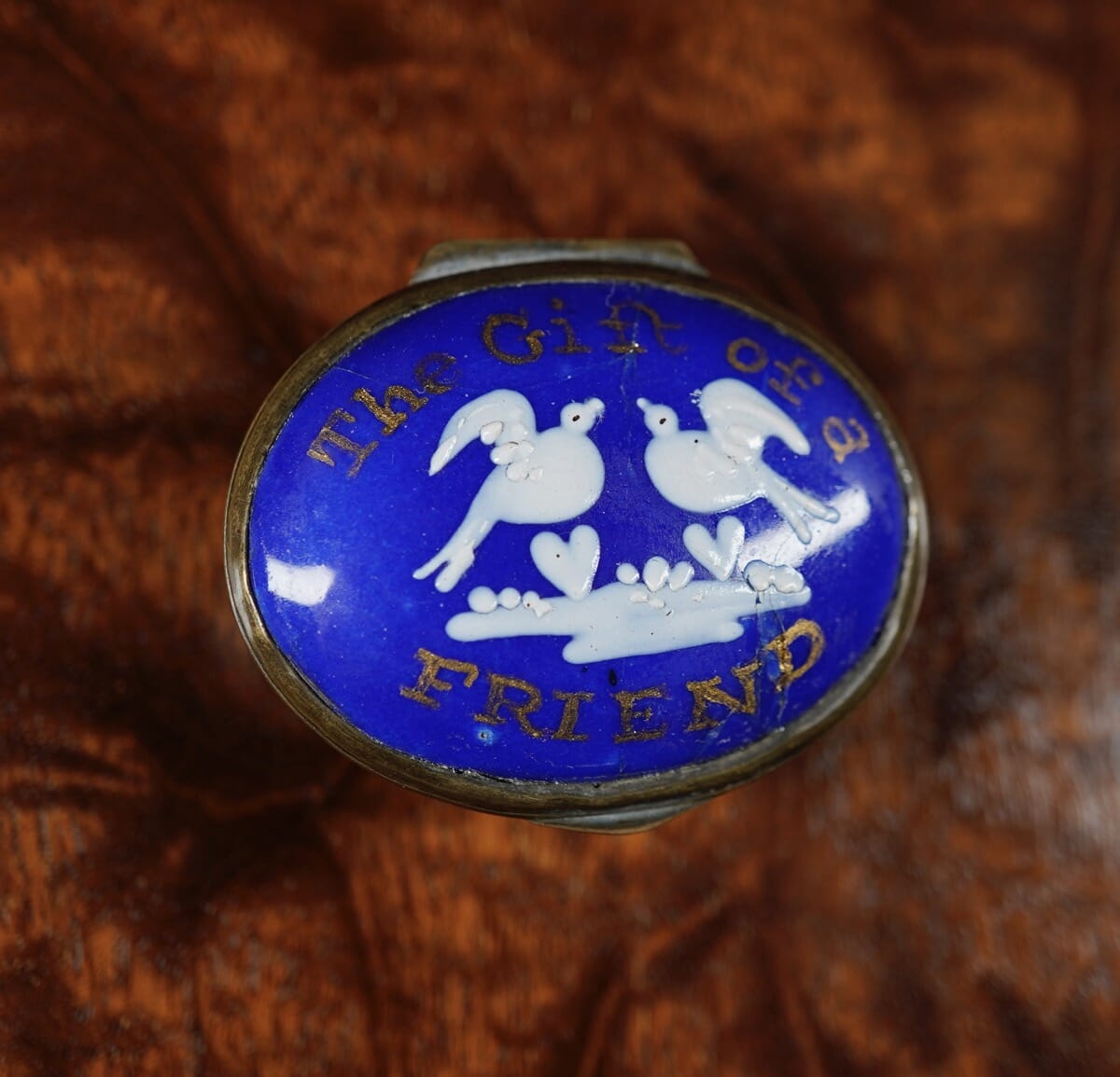 English enamel oval patch box ‘A Token of REGARD’, c. 1790