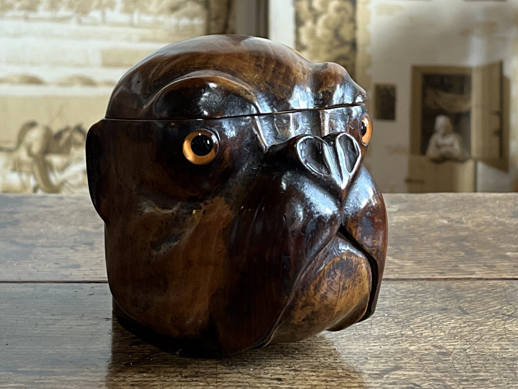 Victorian ‘Pug dog’ Mastiff carved Treen Tobacco Box C.1870