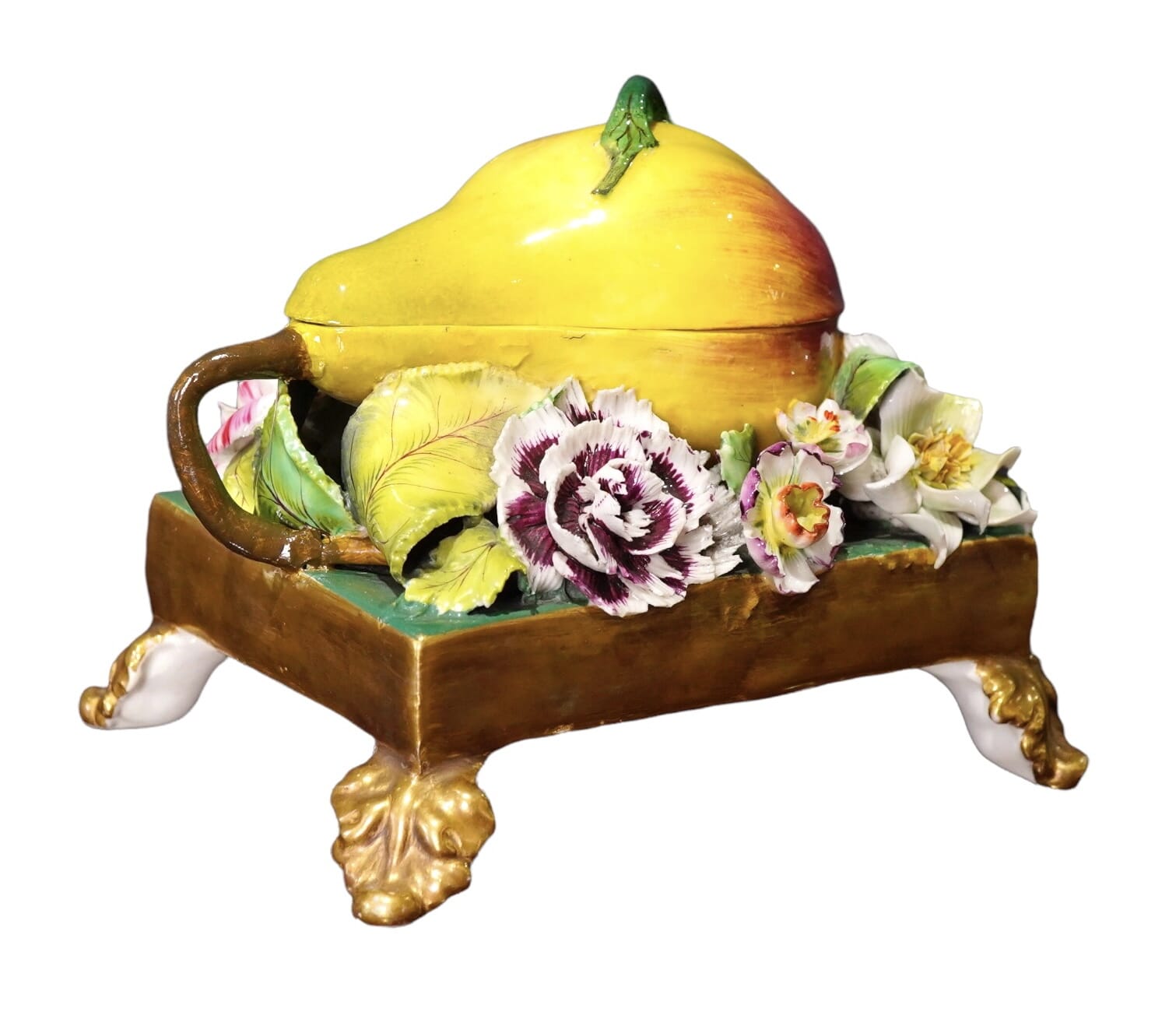 English porcelain pear-form inkwell, flower encrusted, circa 1835