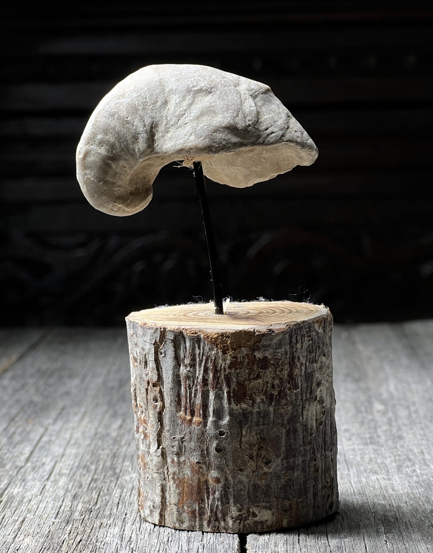 “Devil’s Toenail” Fossil, Gryphaea, Oyster Shell, on stand – 170 million years old