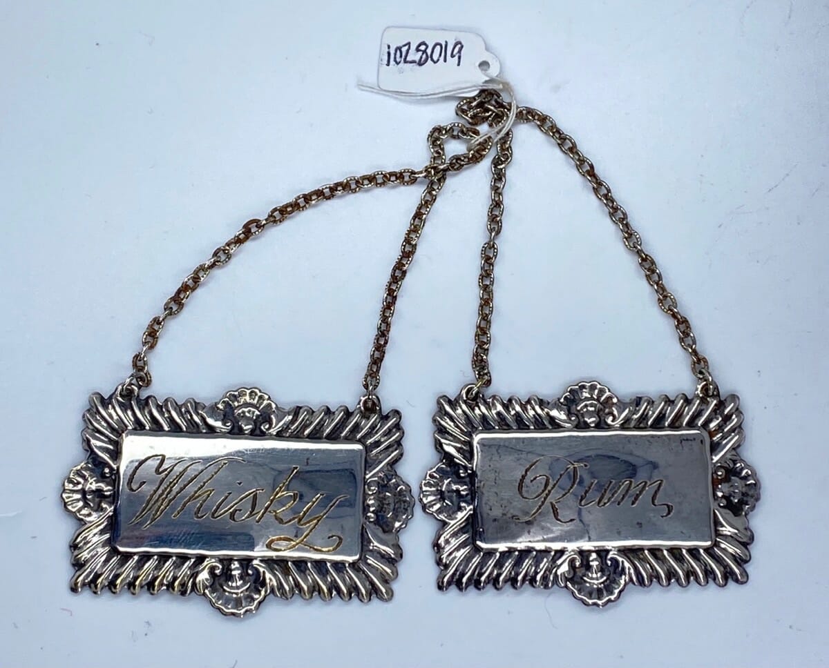 Pair of silverplate decanter labels, WHISKY & RUM 20th c.