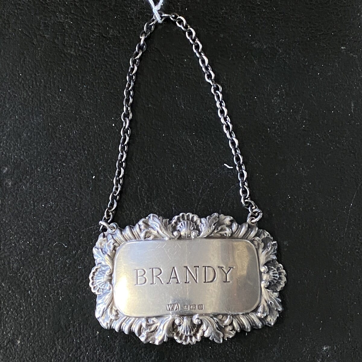 Sterling Silver decanter label, Brandy, Birmingham 1969