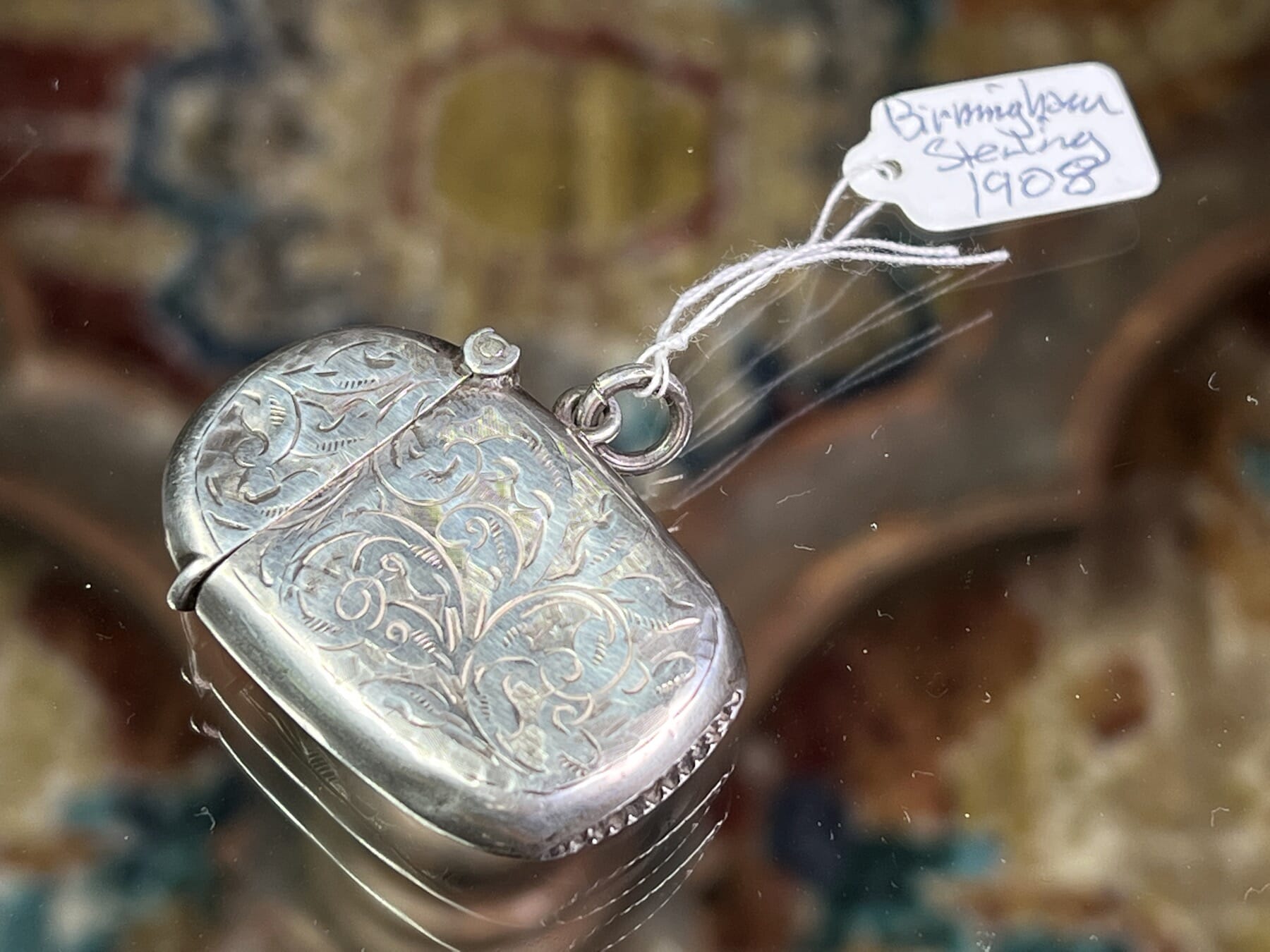 Sterling Silver vespa case, scroll engraved, Birmingham 1908