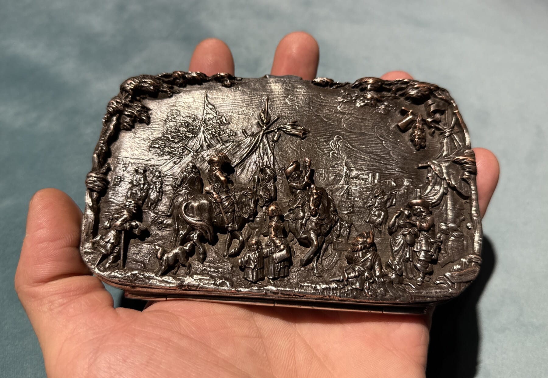 Palais Royal small gilt metal box with turquoise beads, hand-painted portrait, c. 1840