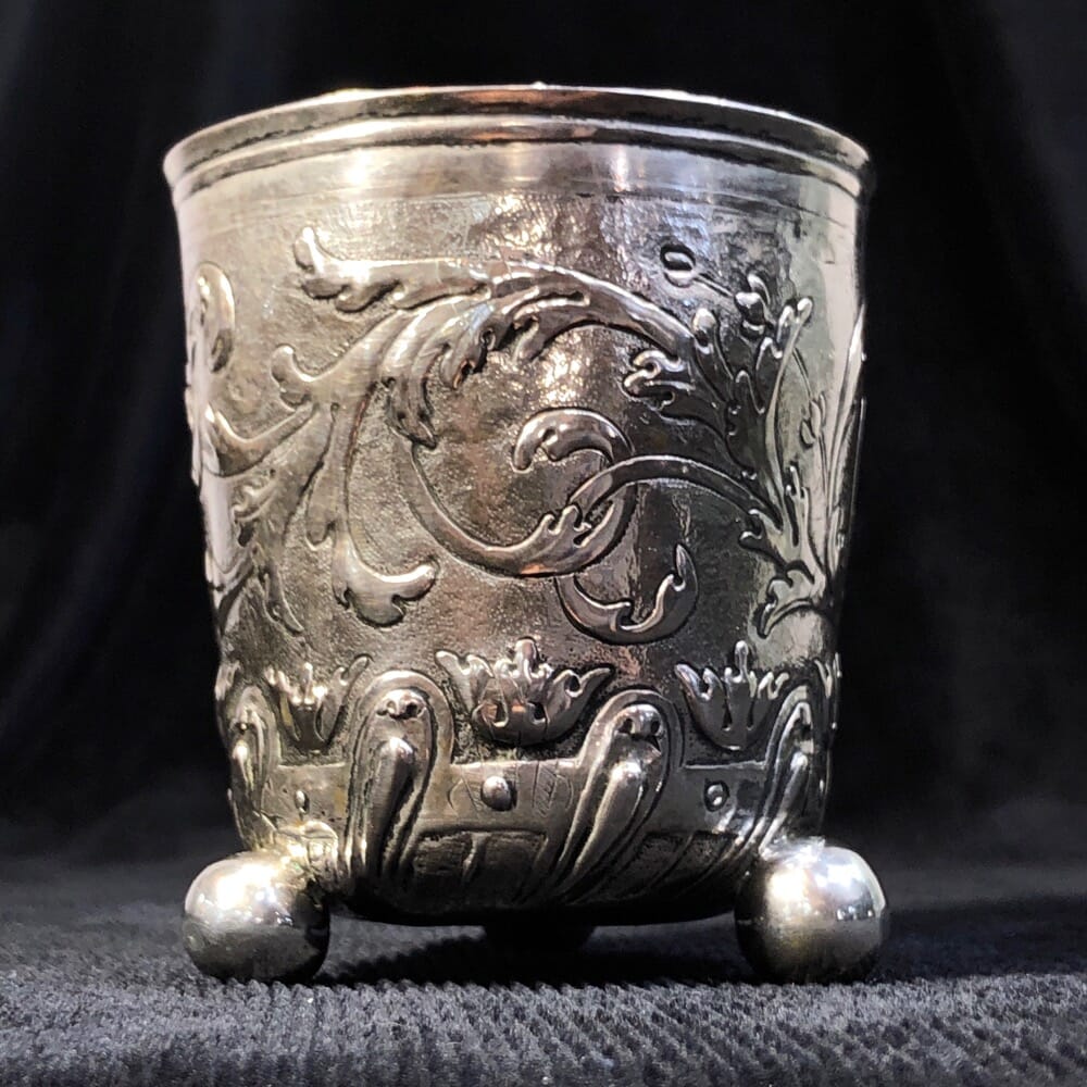 German silver beaker, embossed scrolls, circa 1710