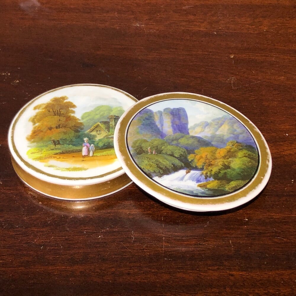 Rockingham porcelain snuff box, landscapes by Bailey, c. 1835