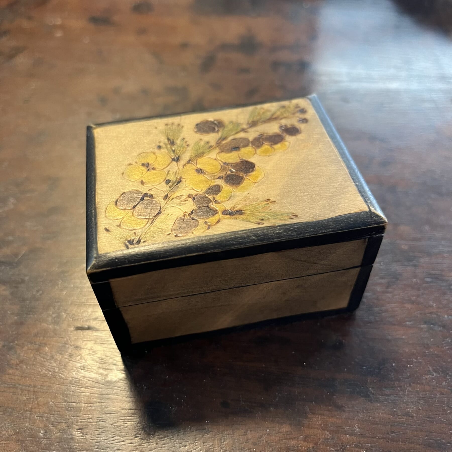 Small wooden double stamp box decorated with pokerwork, 20th C