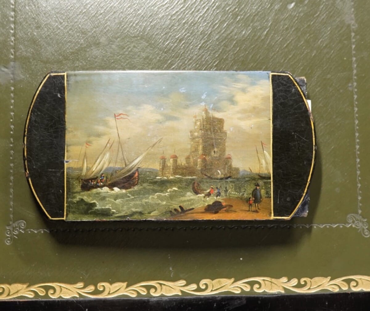 Fine quality scenic painted lacquer spectacle case, c.1870