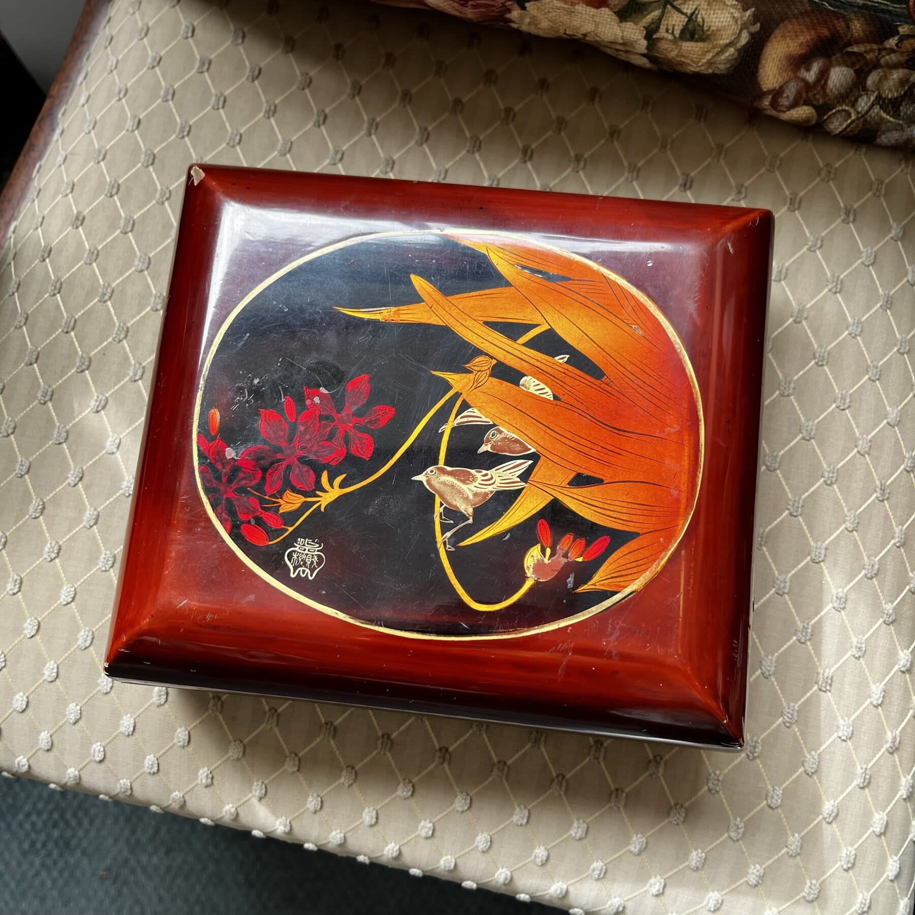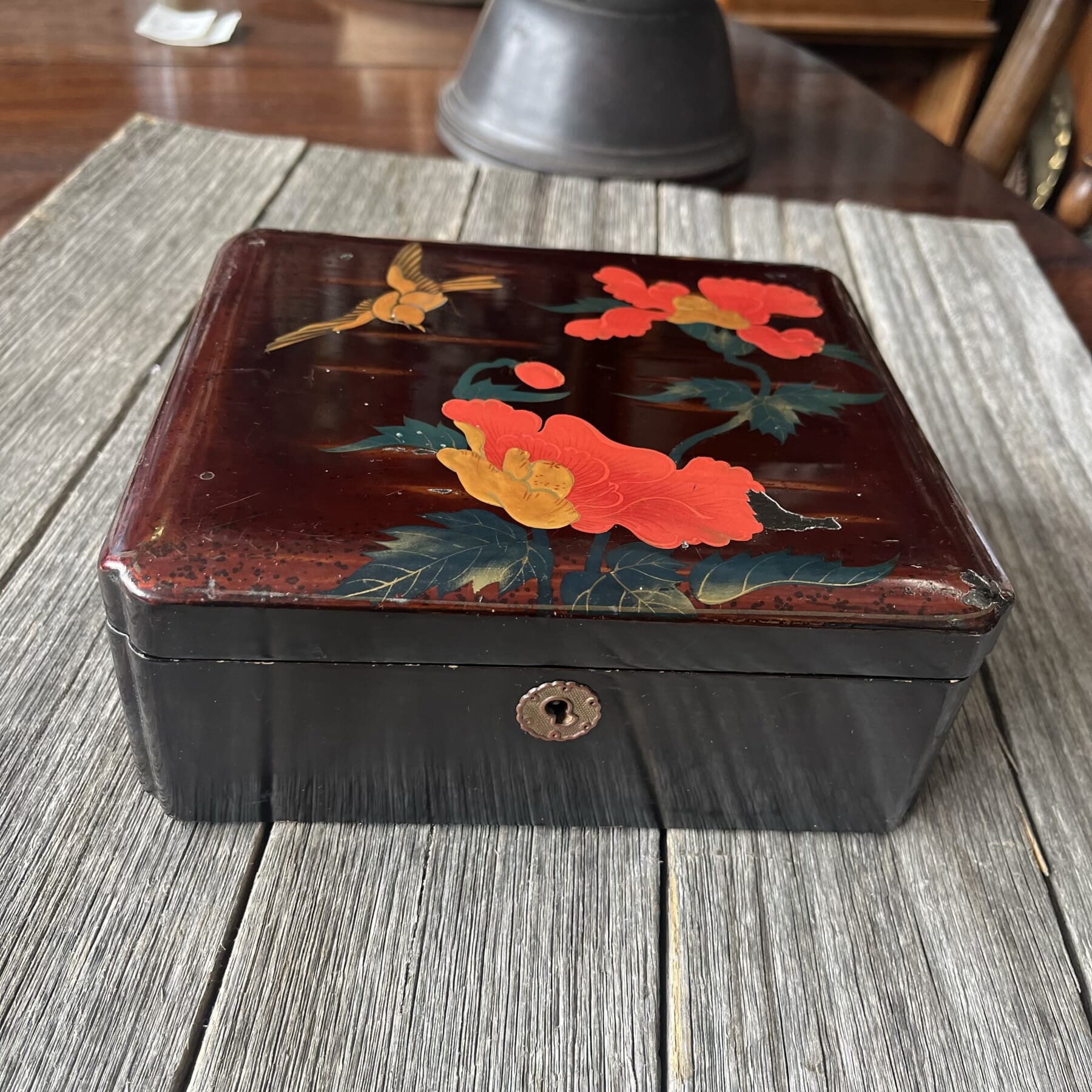 Japanese lacquer box, bird & peony flowers, c. 1900