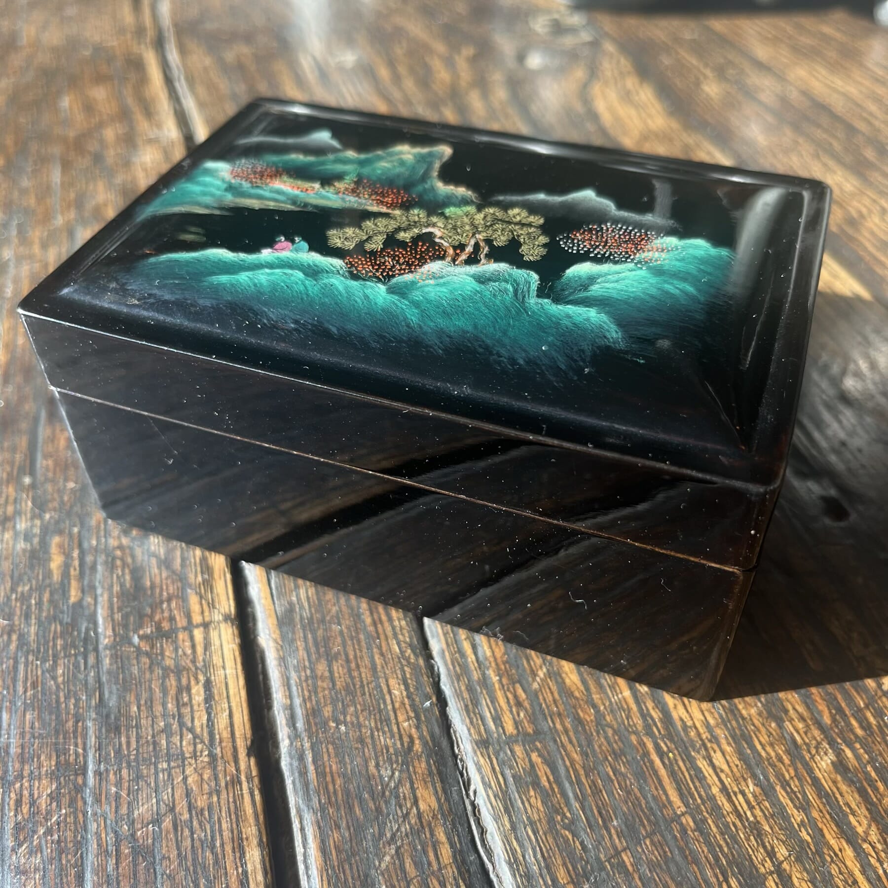 Fine Japanese lacquer box, landscape, earlier 20th c.