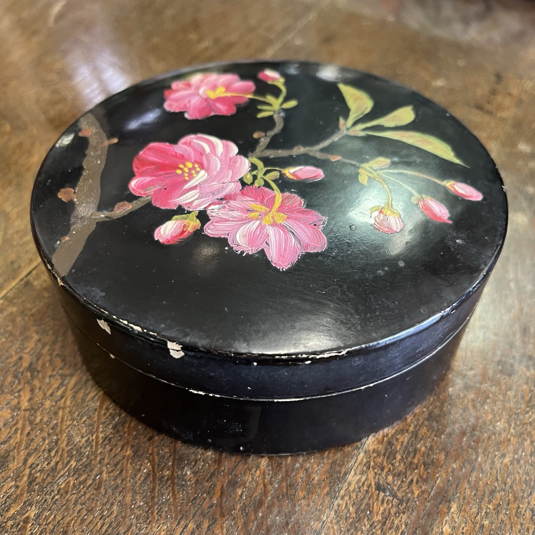 Small Victorian lacquer box, handprinted with blossoms C.1890