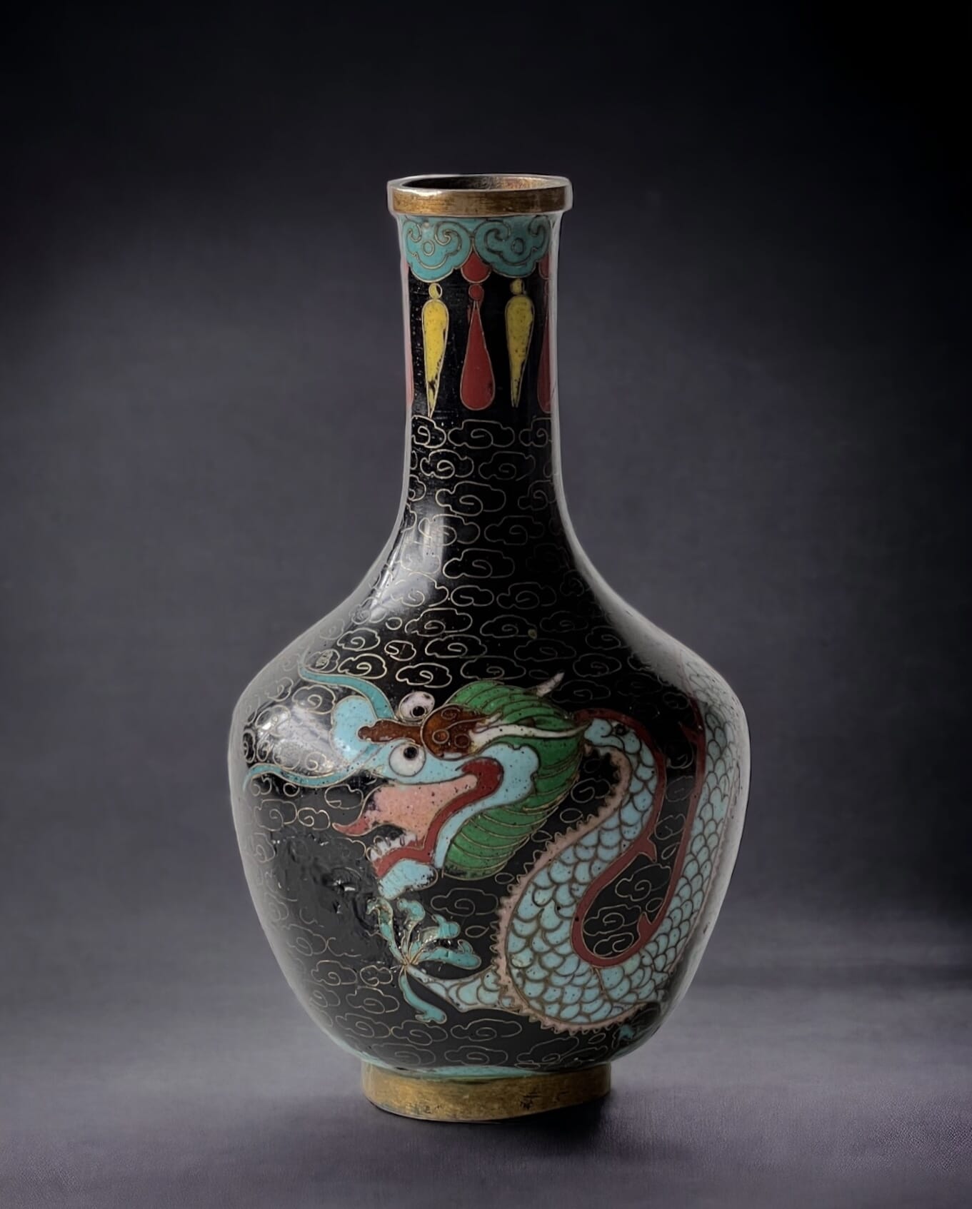 Chinese Porcelain bowl, Dragon & Phoenix on red ground, c. 1900