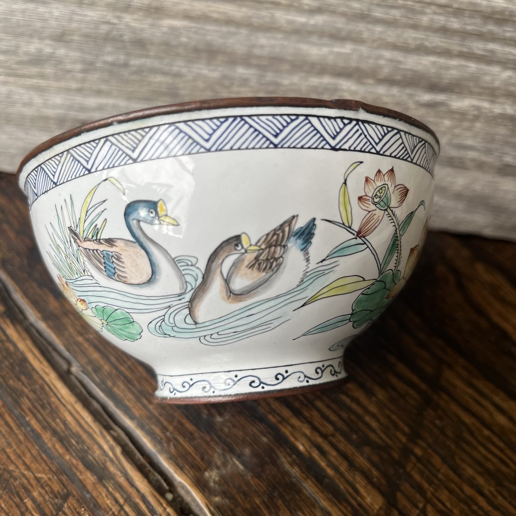 Japanese stoneware tea bowl, iris decoration c.1900