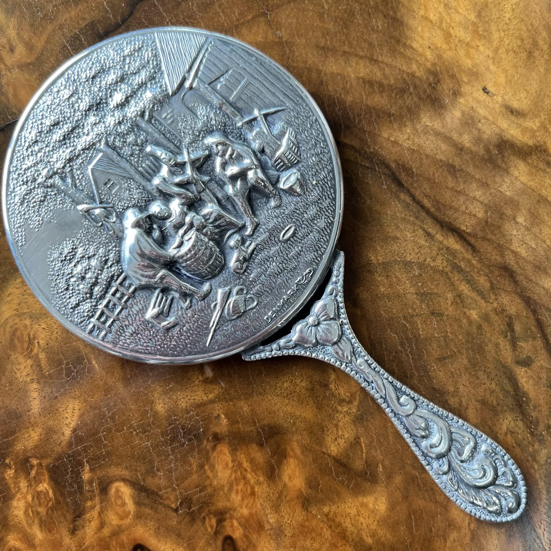 Small Dutch Silver mirror, scene of peasant life, c. 1900