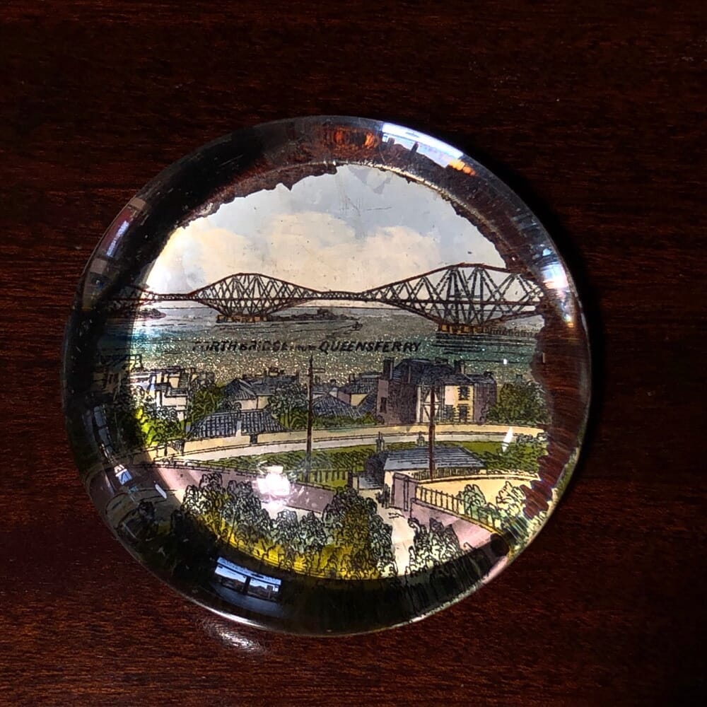 Victorian glass paperweight souvenir – “FORTHBRIDGE from QUEENSFERRY c.1880
