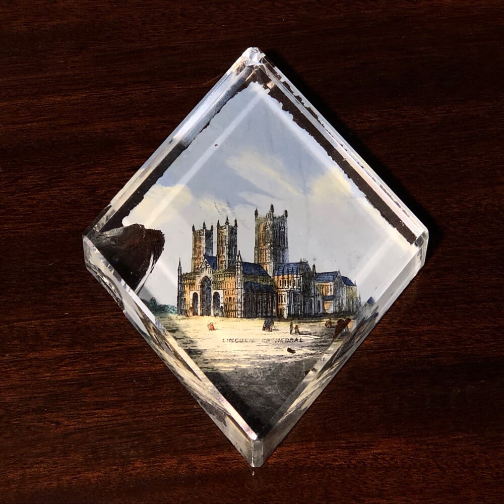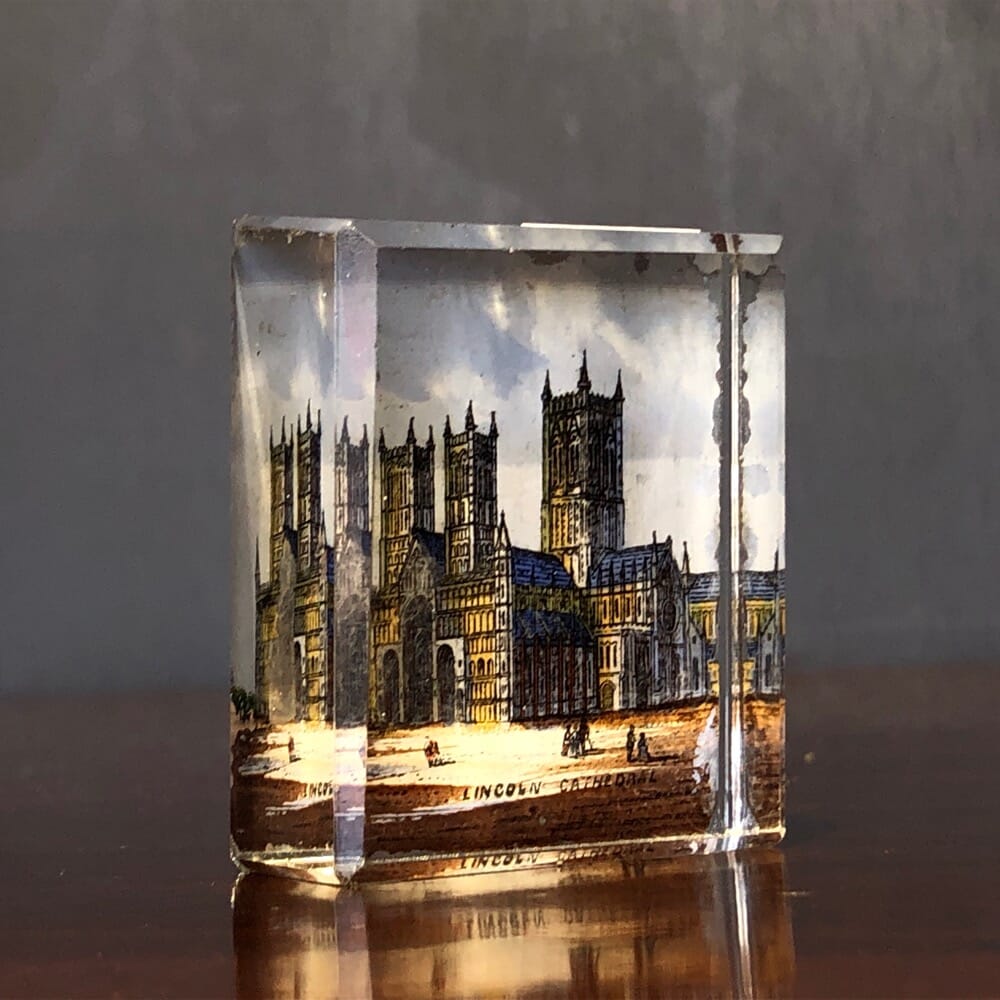 Victorian rectangle glass paperweight souvenir – Lincoln Cathedral c.1880