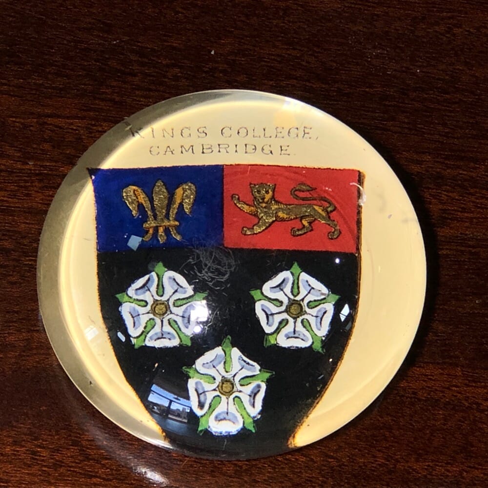 Victorian glass paperweight souvenir – “KINGS COLLEGE CAMBRIDGE” c.1880