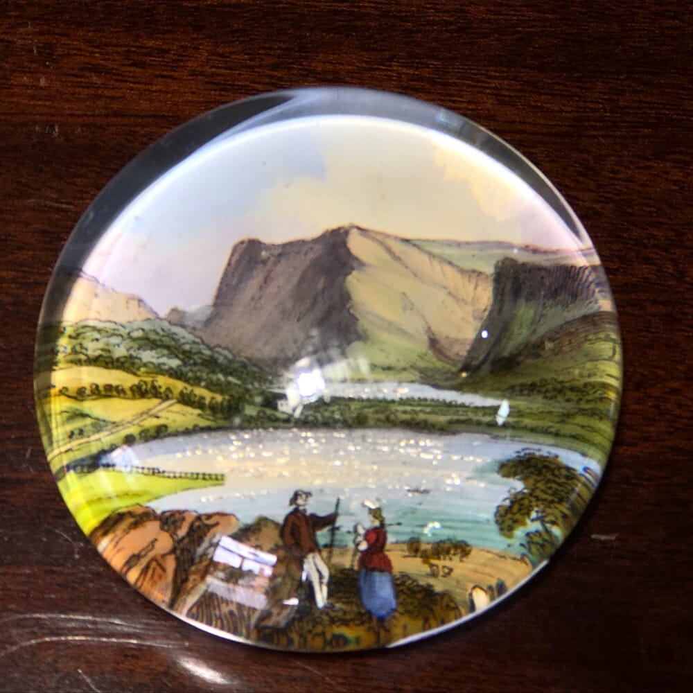 Victorian glass paperweight souvenir – Crummock & Buttermere Lakes – c. 1880