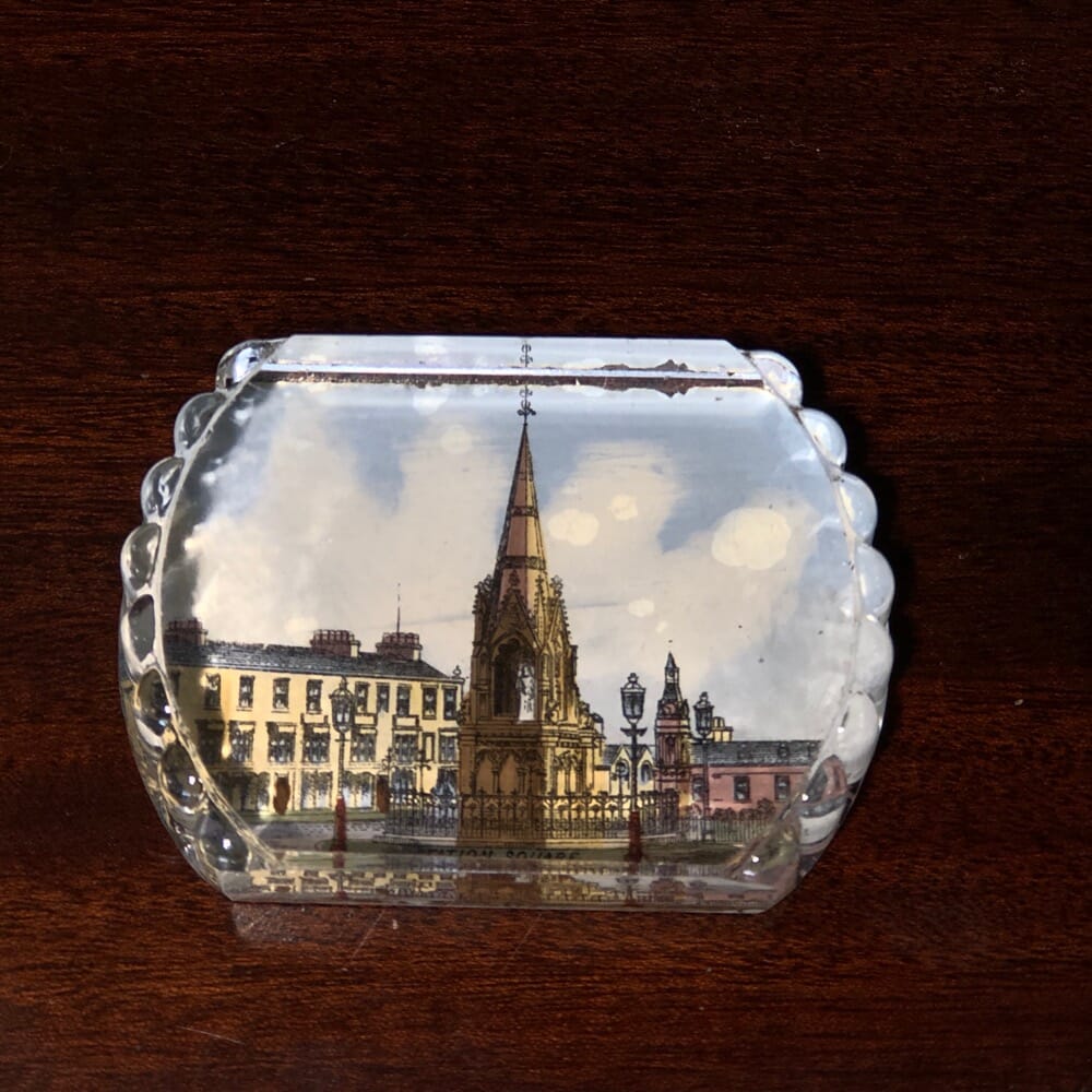 Victorian glass paperweight souvenir – “ST MICHAEL’S CHURCH” c.1880
