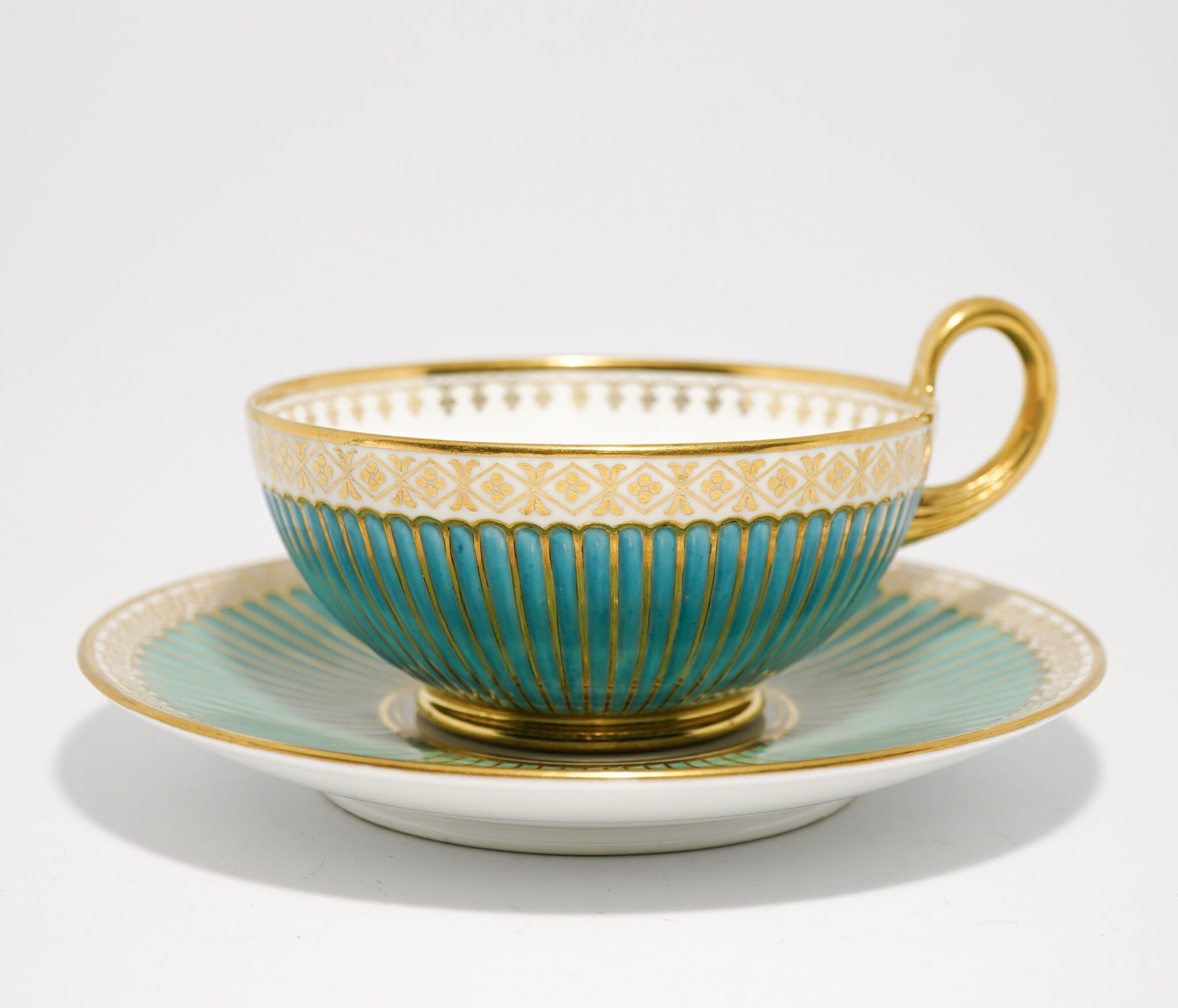 Sevres Louis Phillipe cup & saucer, turquoise fluted, dated 1835