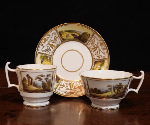 Minton cup & saucer, claret with landscapes, pattern 792 c.1830