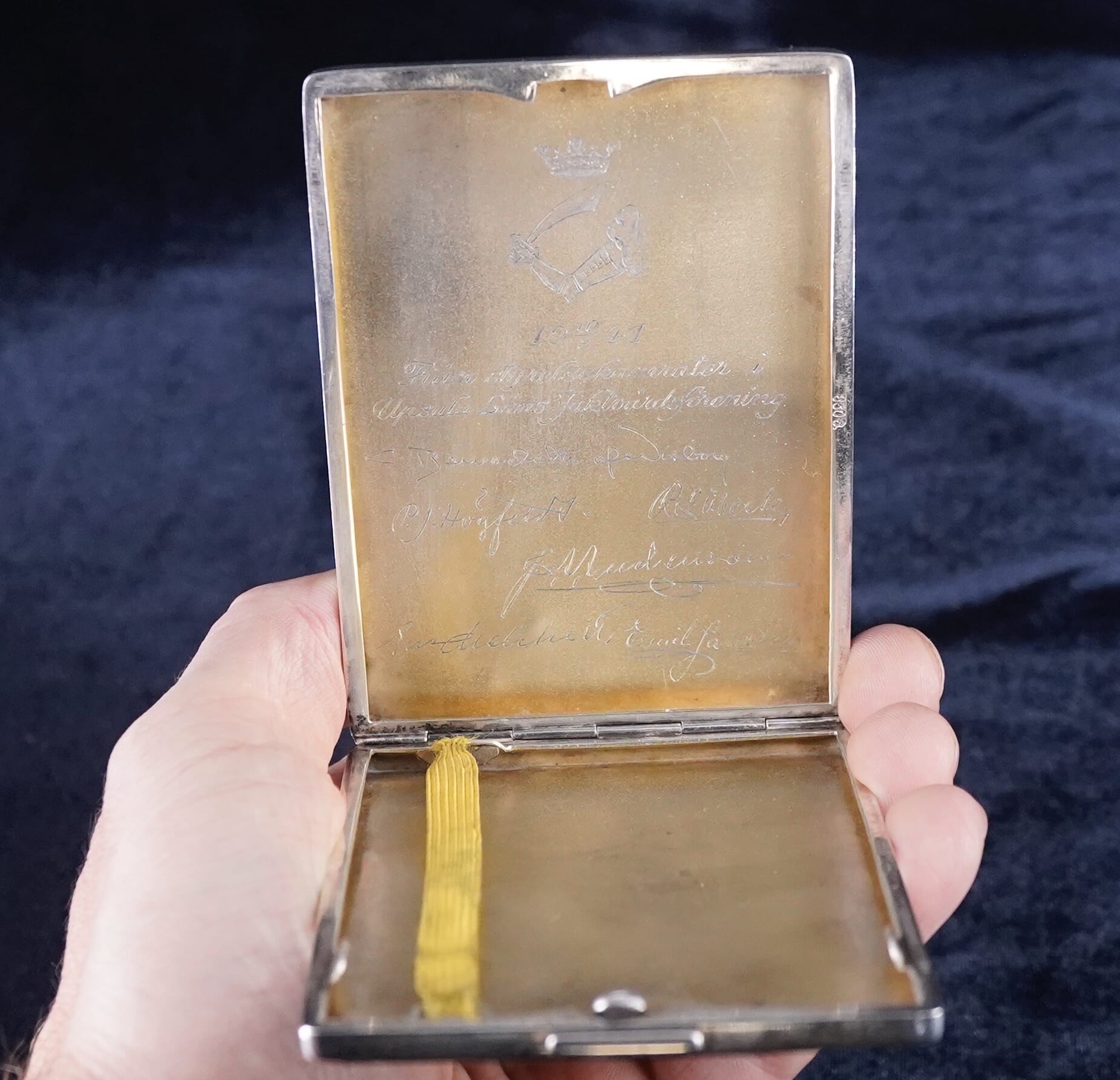 Swedish Silver case, inscribed for Count Bernadotte of Wisborg, dated 1941