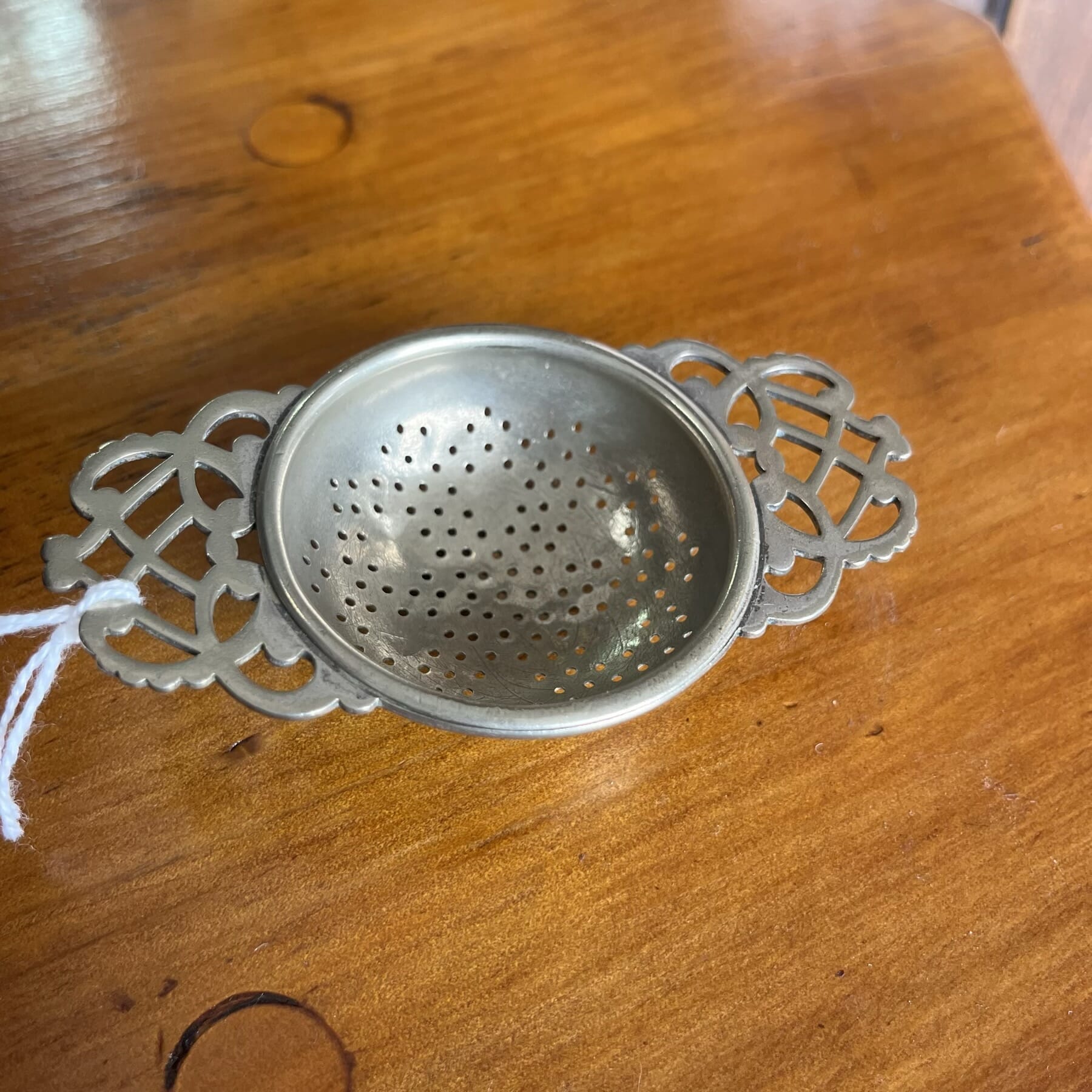 Silverplate tea strainer + stand, Deco style, c. 1930