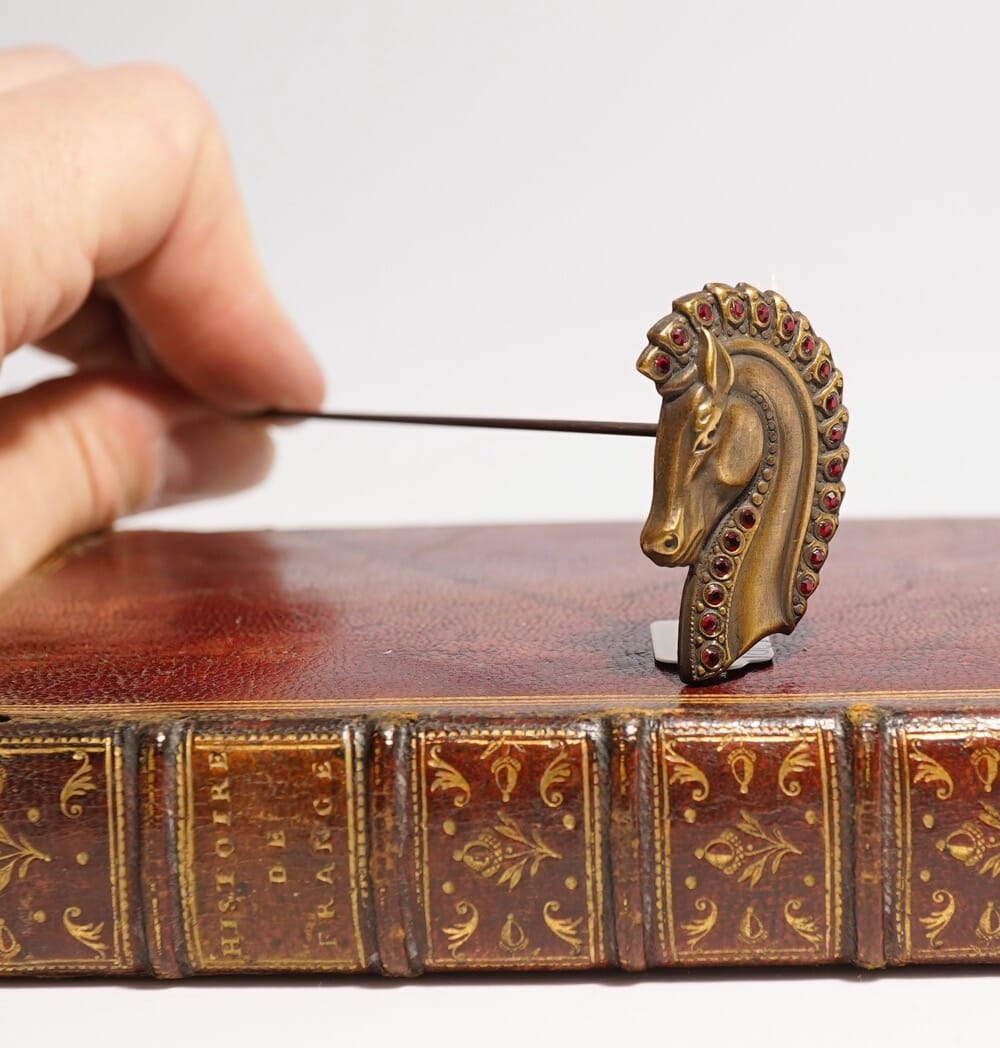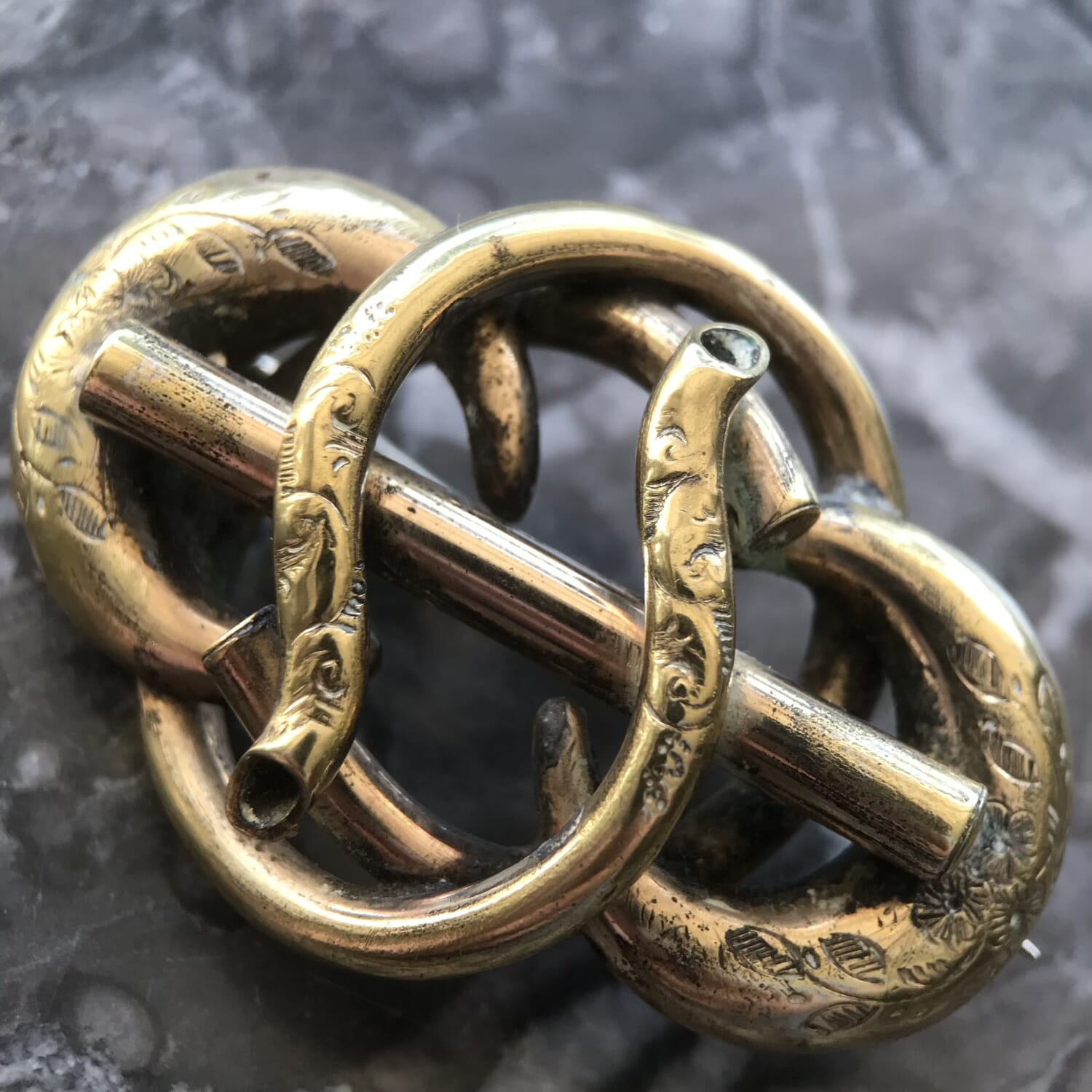 Victorian gold ‘tube’ brooch with fine engraving, c.1860
