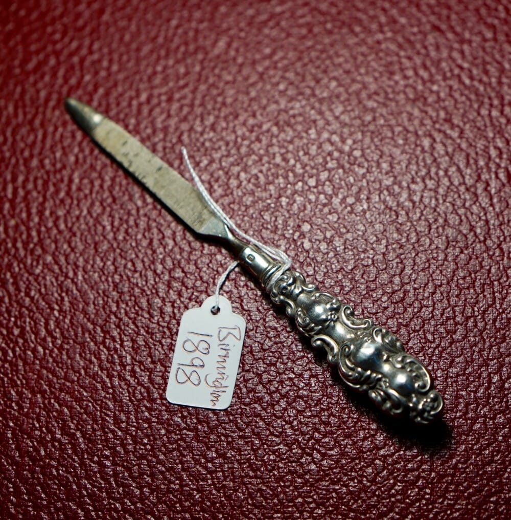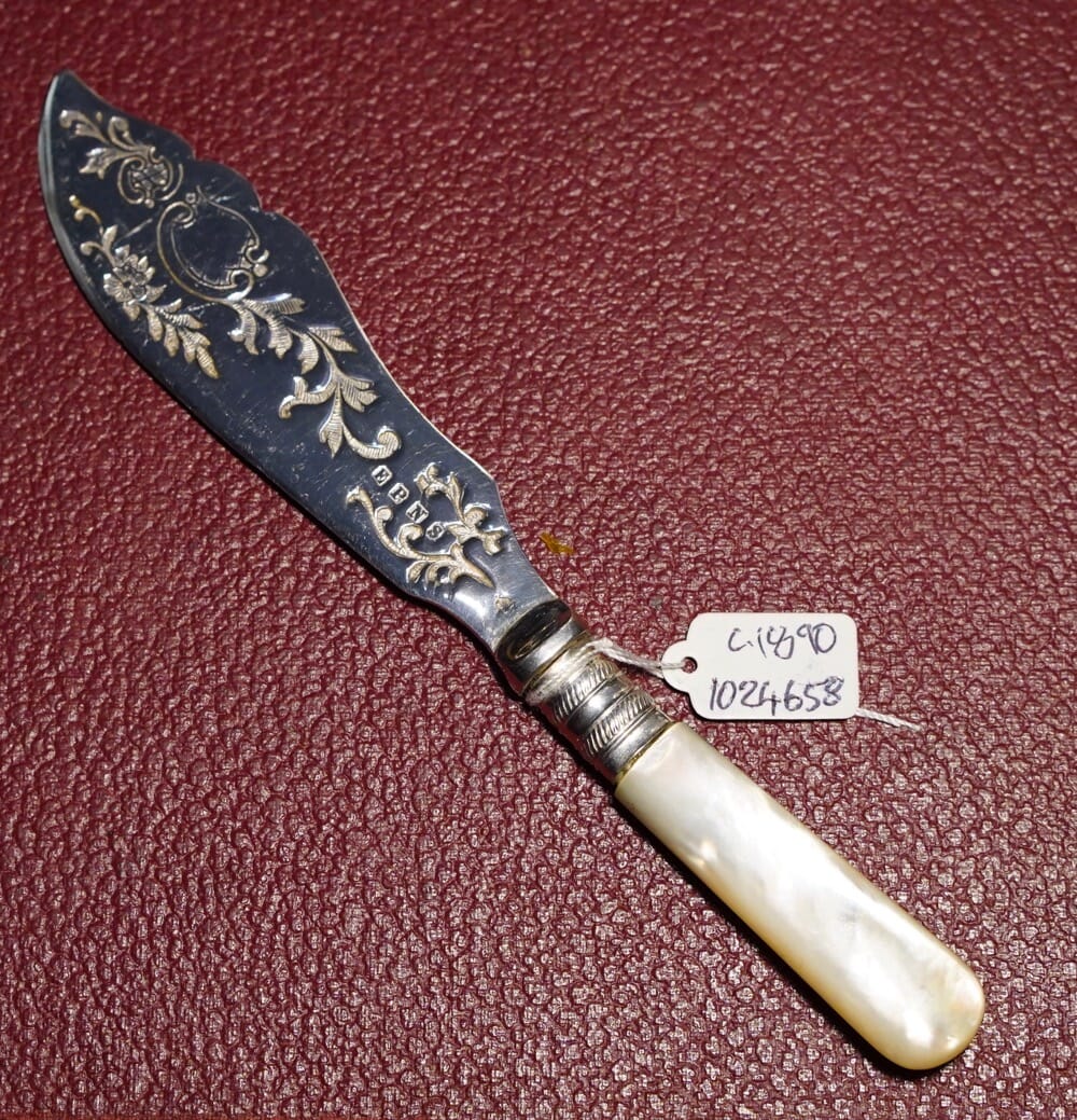 Victorian pearlshell handled pate knife, silver mount, c. 1890