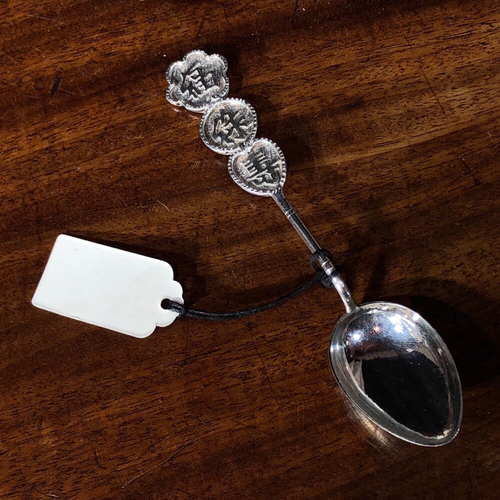 Chinese silver spoon with three inscriptions to handle, c. 1900