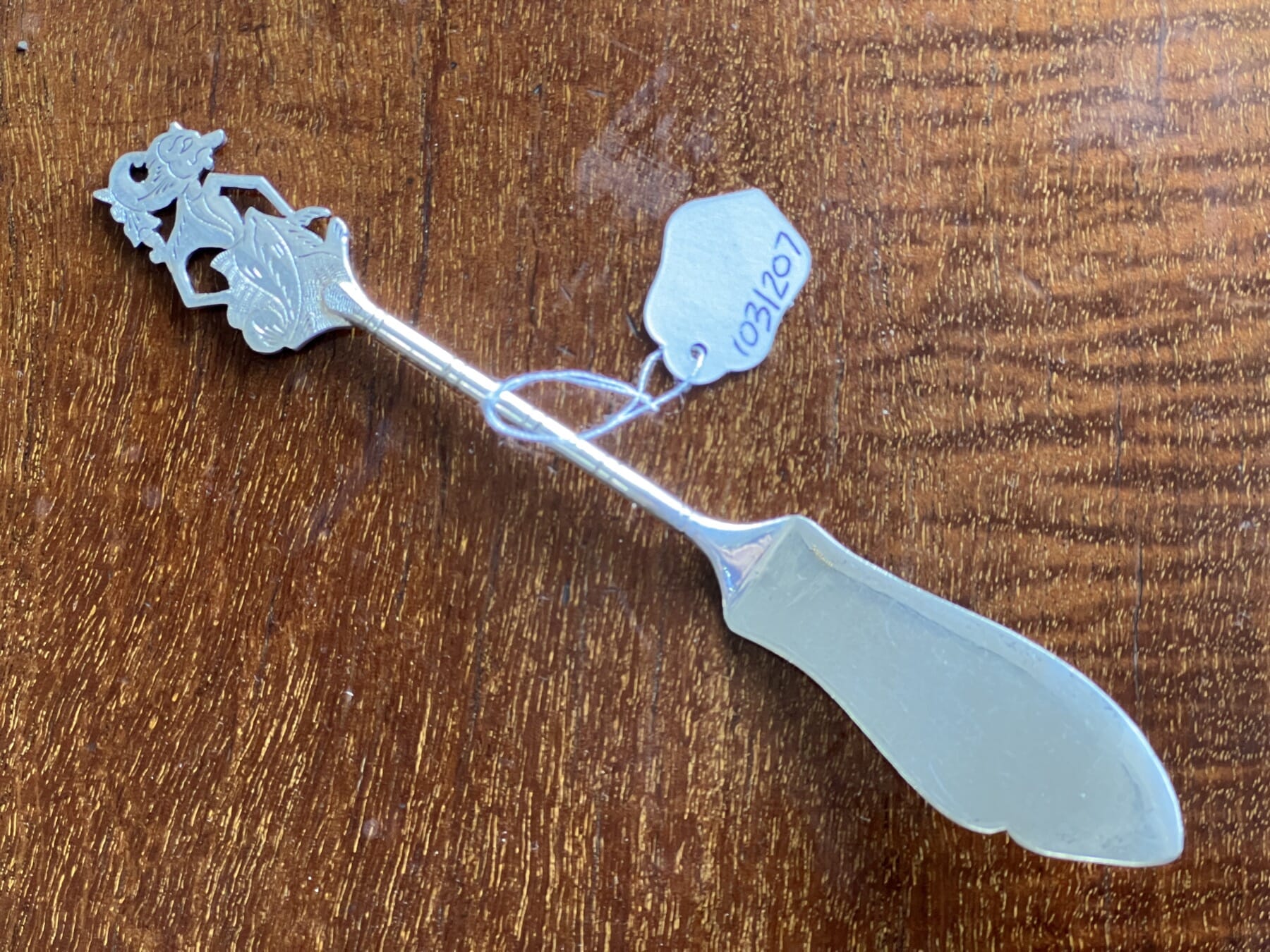 Siamese – Thai .800 silver butter knife, shadow puppet, C.1900