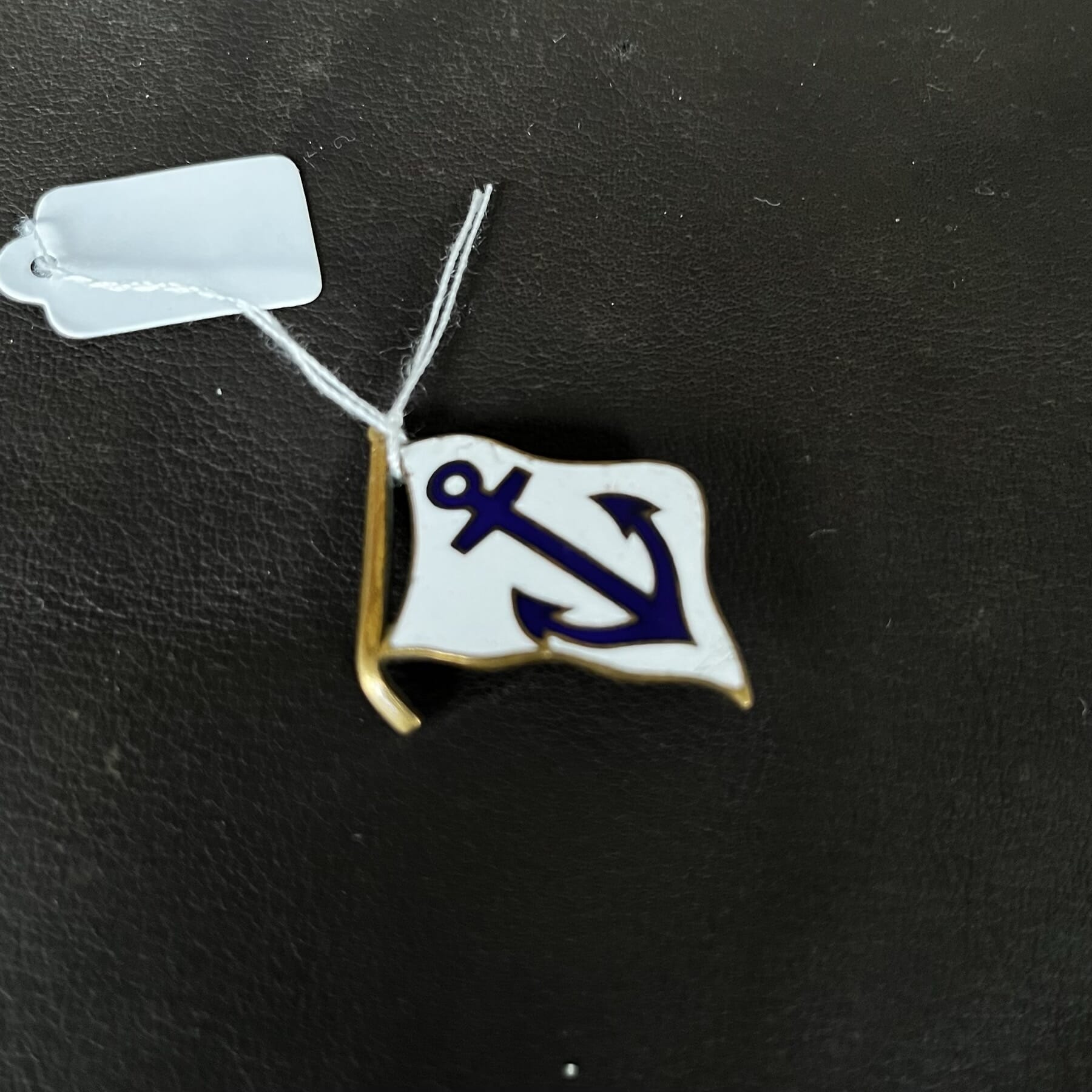 Enamel brooch, Nautical signaling flag ‘S’, c. 1920