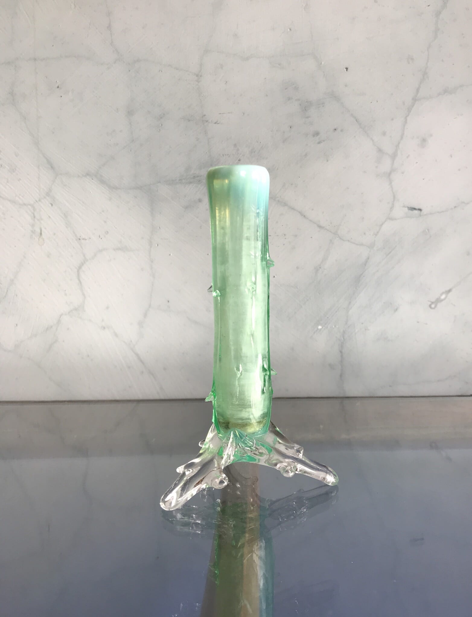 Unusual Uranium glass altar candlestick / vase, Fostoria USA ‘Heirloom’ c. 1960