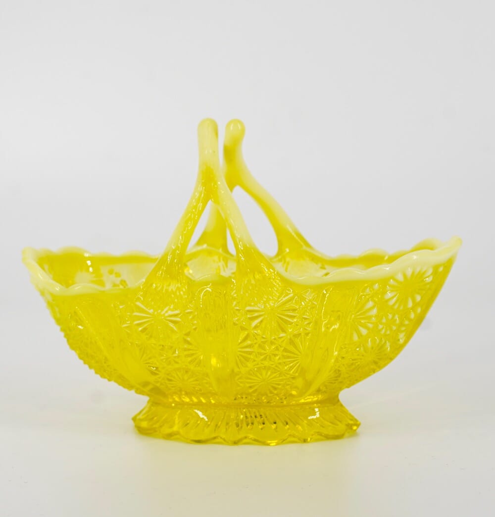 Victorian Uranium glass basket, flowers & spiral, c. 1890