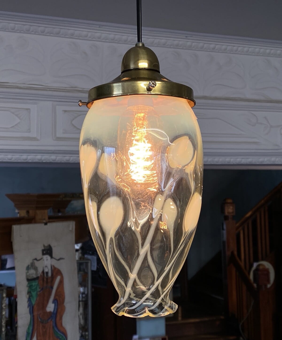 Whitefriars – Bishop & Powell – Vaseline Uranium Glass light fitting, c.1905