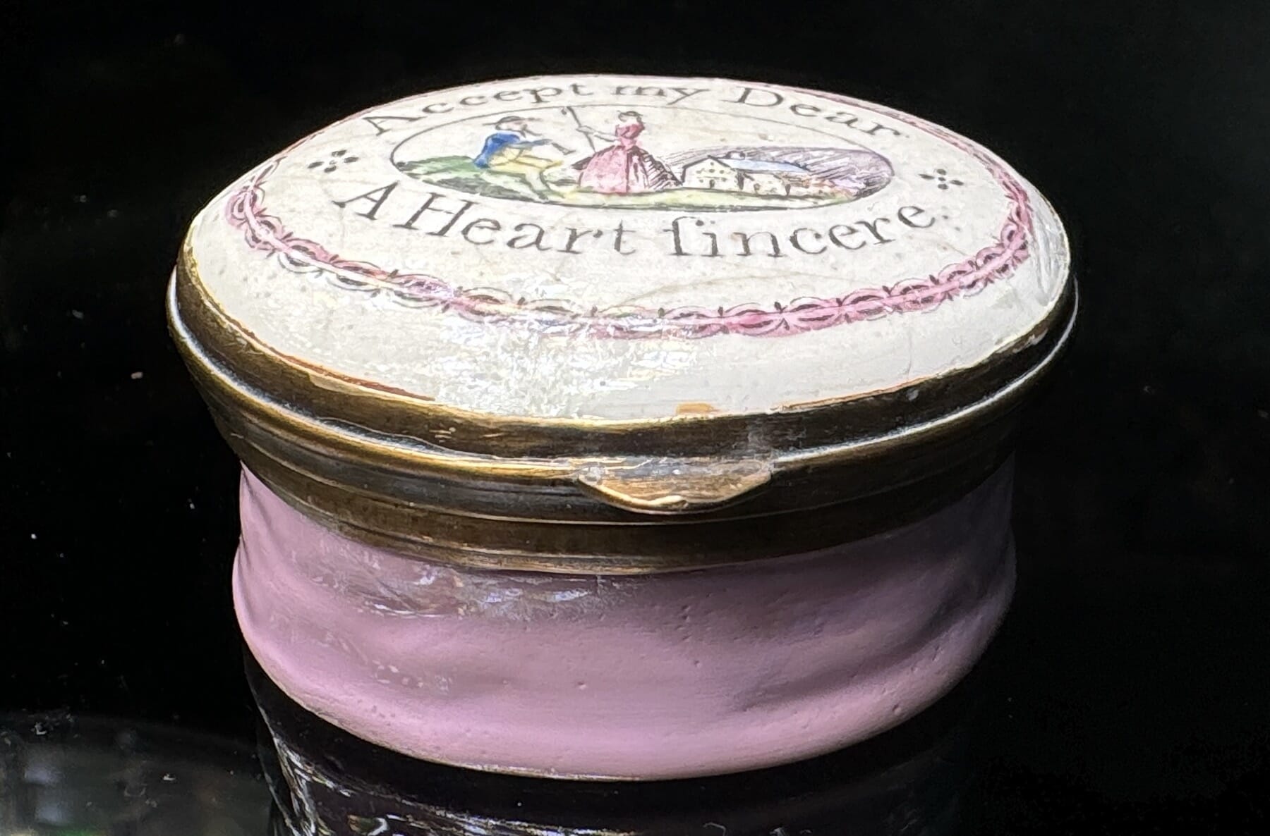 English enamel patch box, A TOKEN OF LOVE c.1800
