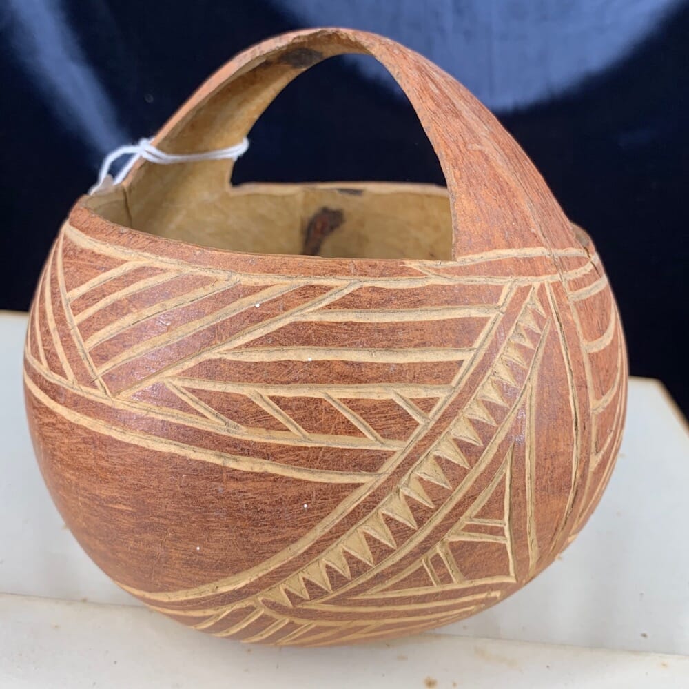 Papua New Guinea basket made form a carved coconut shell