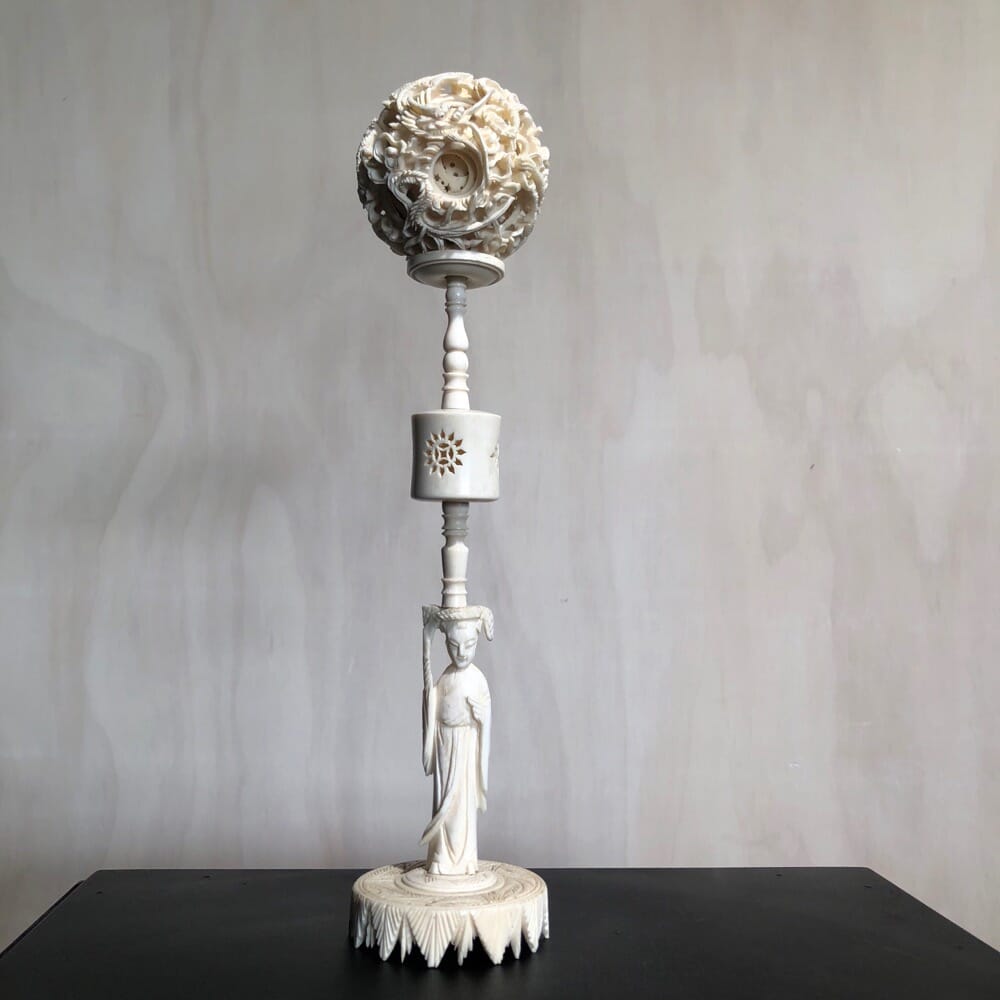 Chinese carved coconut bowl, ‘Happiness’ & prunus, 19th century