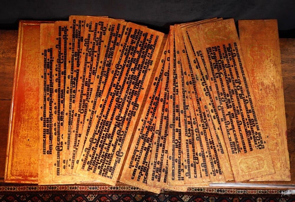 Chinese pottery figure, modelled as a standing figure in long flowing robes, the hands pierced to take a fitting.