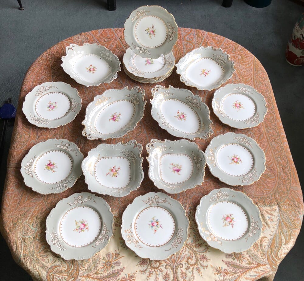 Tall comport, 2 short comports, 10 plates, total 13pc