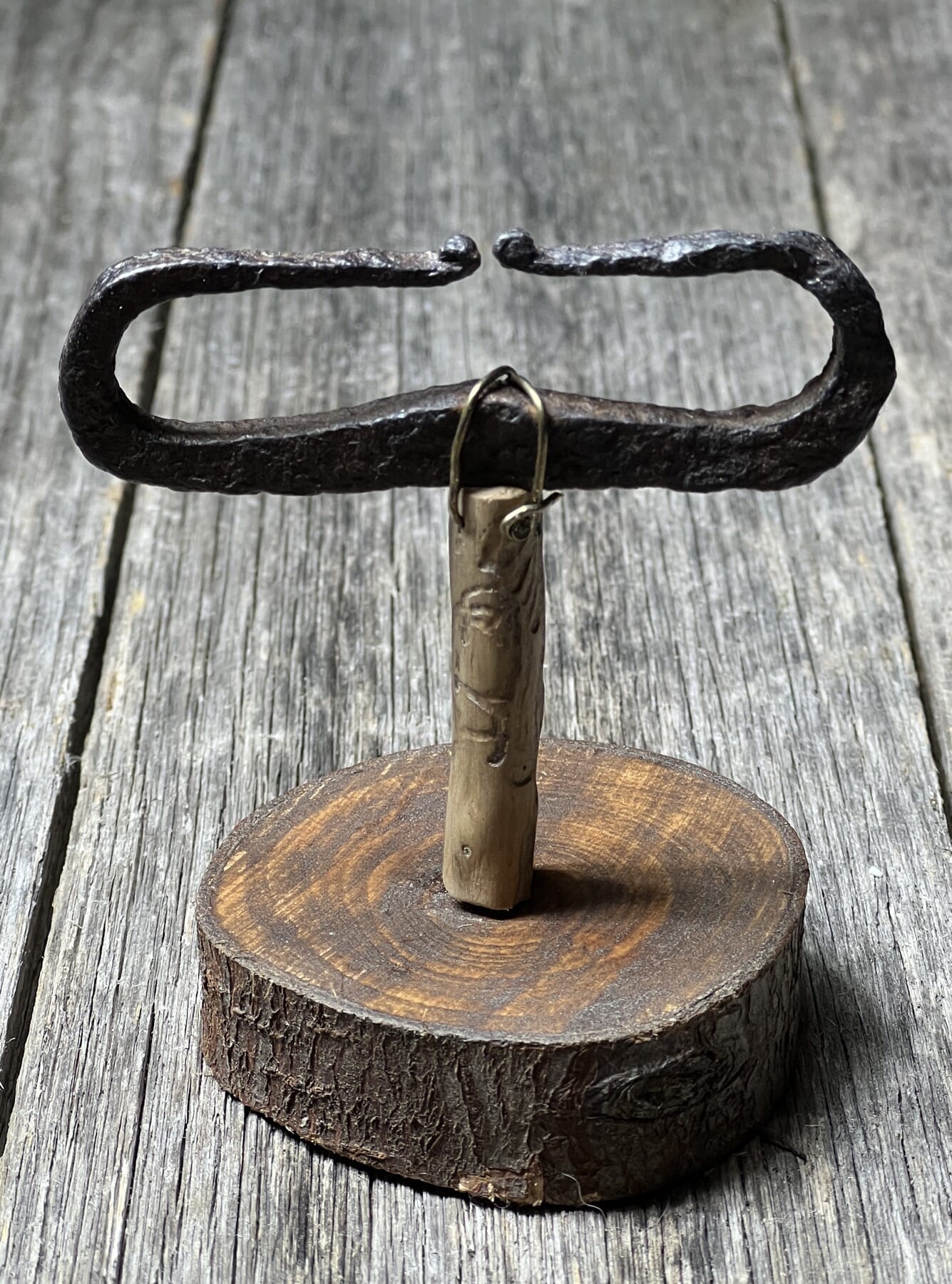 European bronze ring, formed as a miniature armlet with twisted body & spiral terminal.
