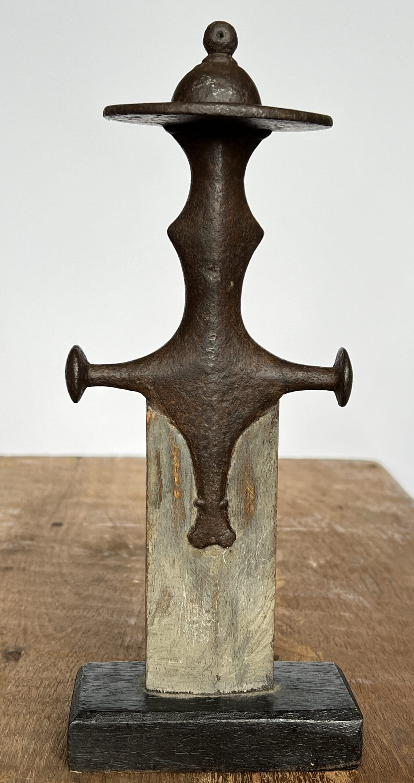 Bronze Belt Hook of elegant shape, with stylised feline head to the hook and spreading fan shaped base with fluted surface.